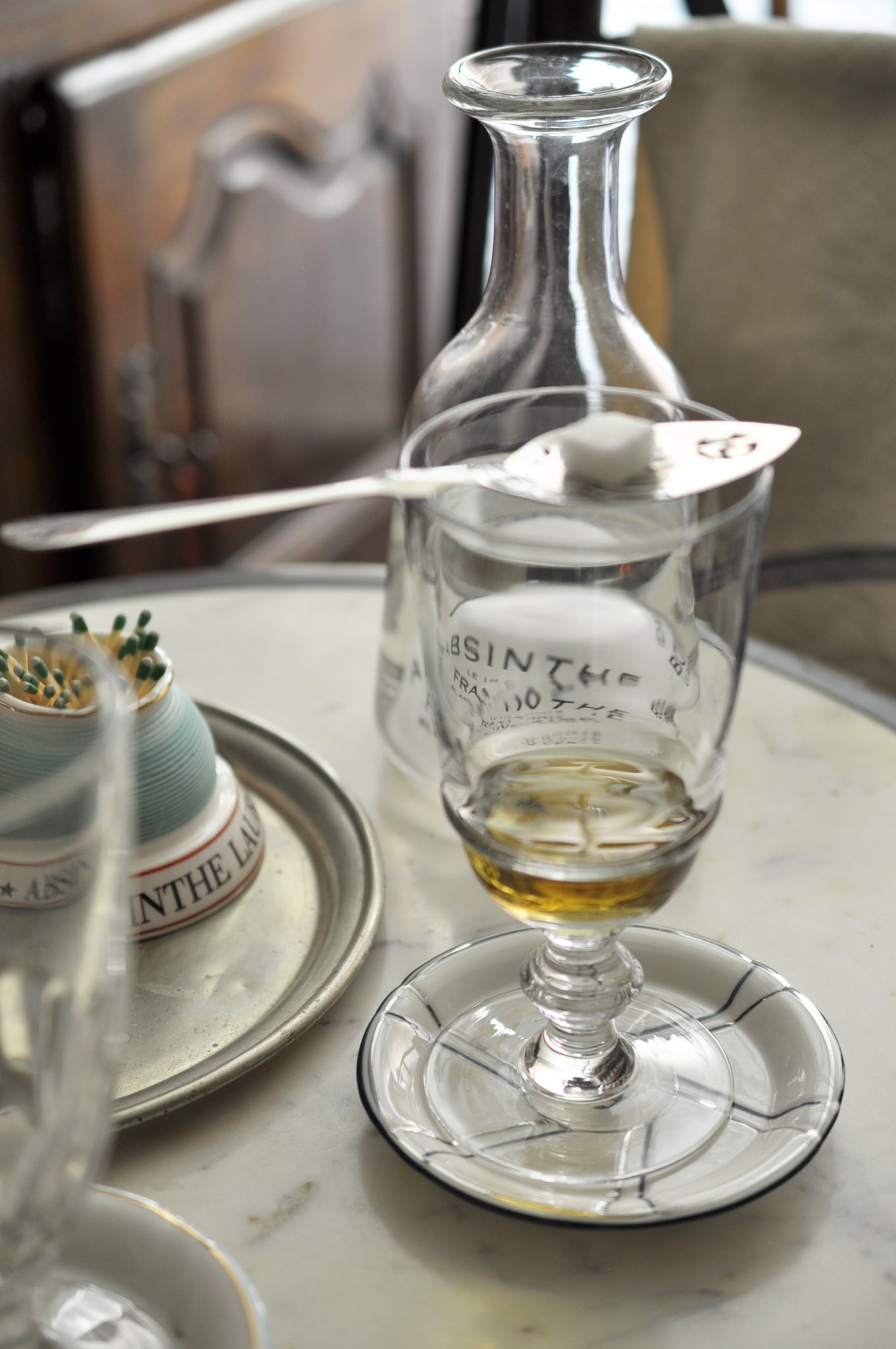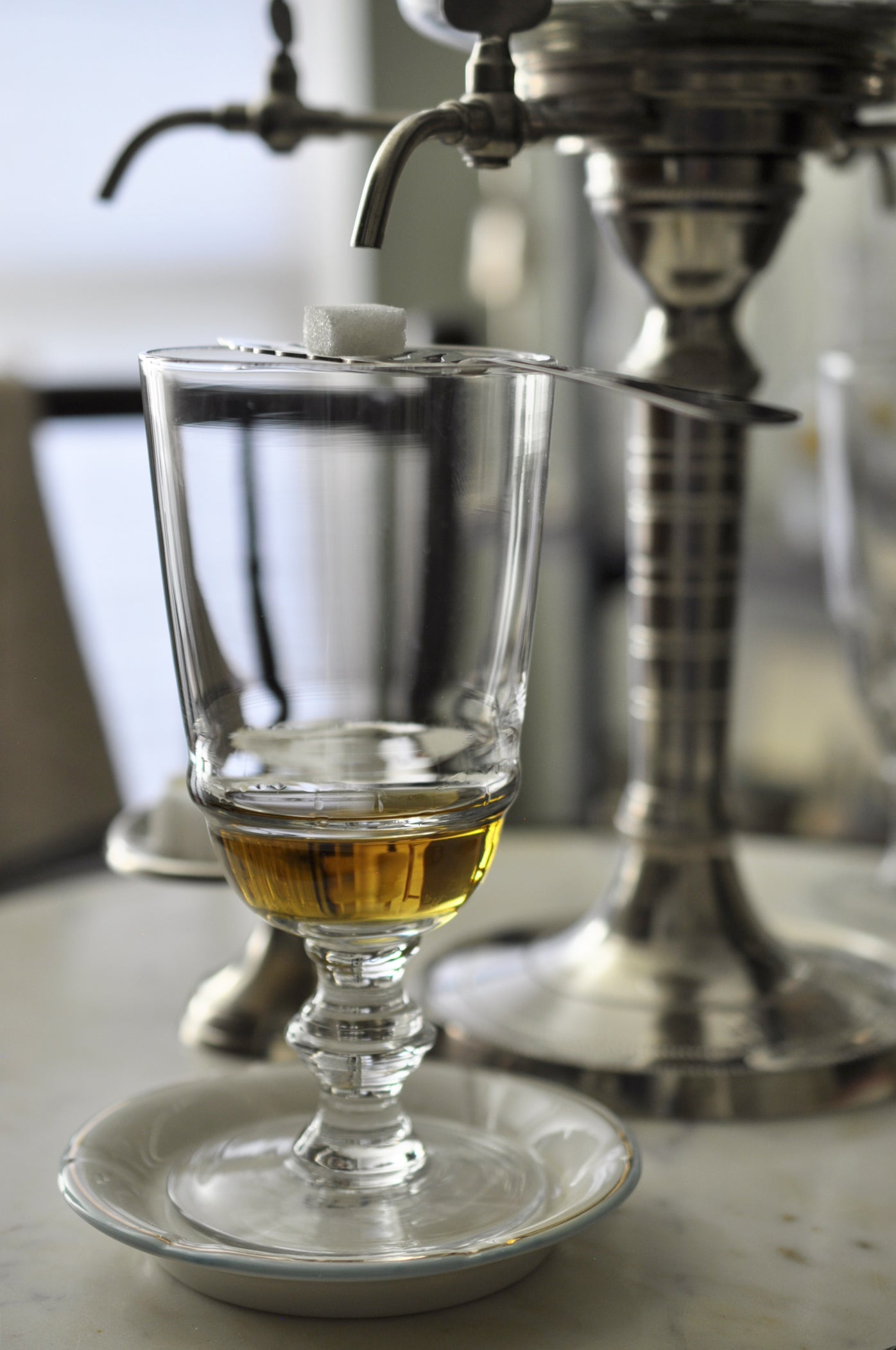 L'eau sucrée tombe de la cuillère dans le verre, se mélange à l'absinthe, libère des huiles essentielles et parfume l'air d'une odeur d'anis, de fenouil et de grande absinthe.