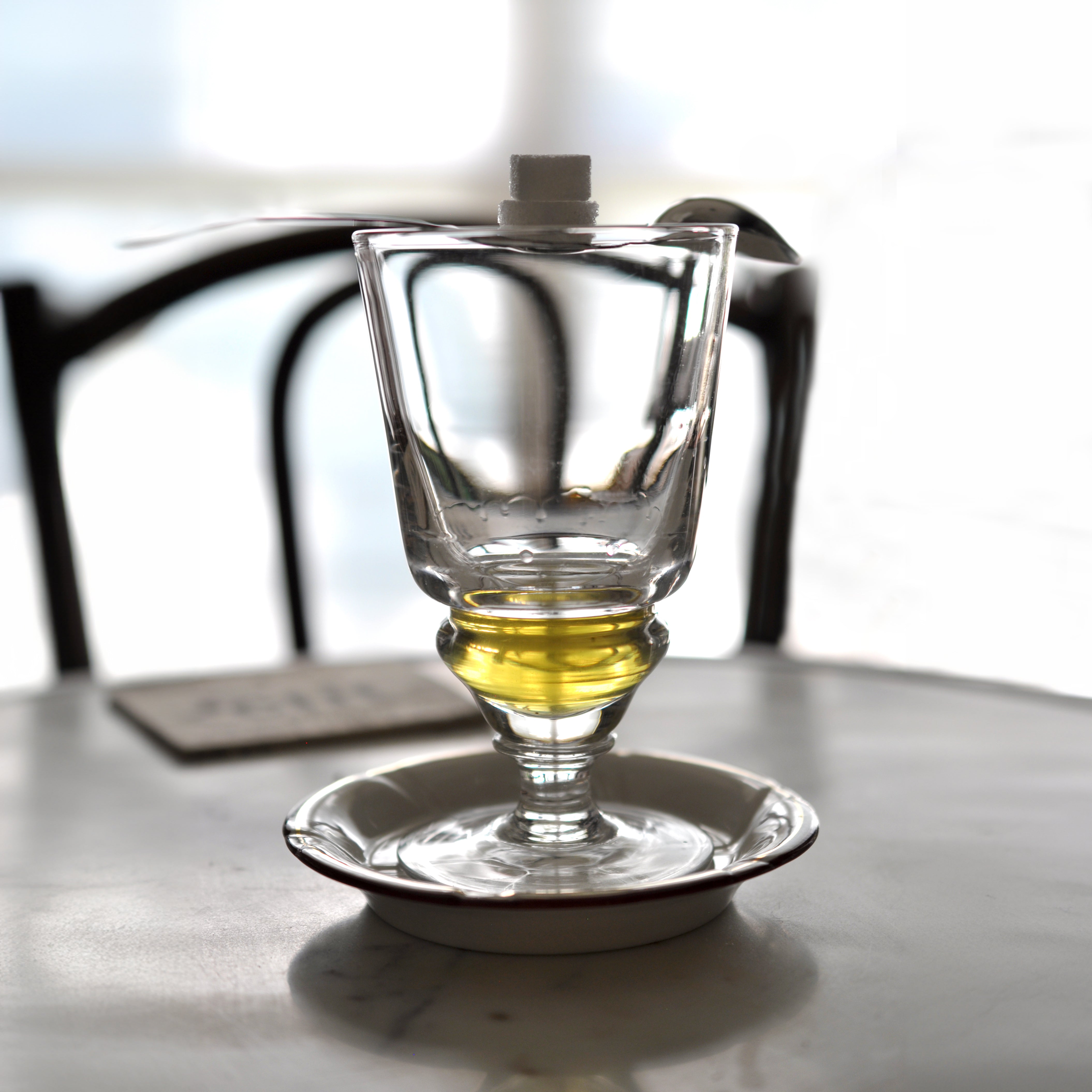 Ces verres soufflés à la bouche sont des répliques exacte du légendaire verre à absinthe de Pontarlier, mais sans les facettes. Le nom du verre est apparu pour la première fois dans une publicité de la fin du XIXe siècle pour le producteur d'absinthe Pernod Fils, qui présentait son journal local de Pontarlier, en France (voir photo au dessus). La petite ville endormie de Pontarlier était autrefois le plus grand fabricant d'absinthe au monde et le siège de ceux qui étaient considérés comme les meilleurs fabricants d'absinthe au monde. Pernod Fils, considéré comme le meilleur des meilleurs, a été le premier à y lancer sa production.