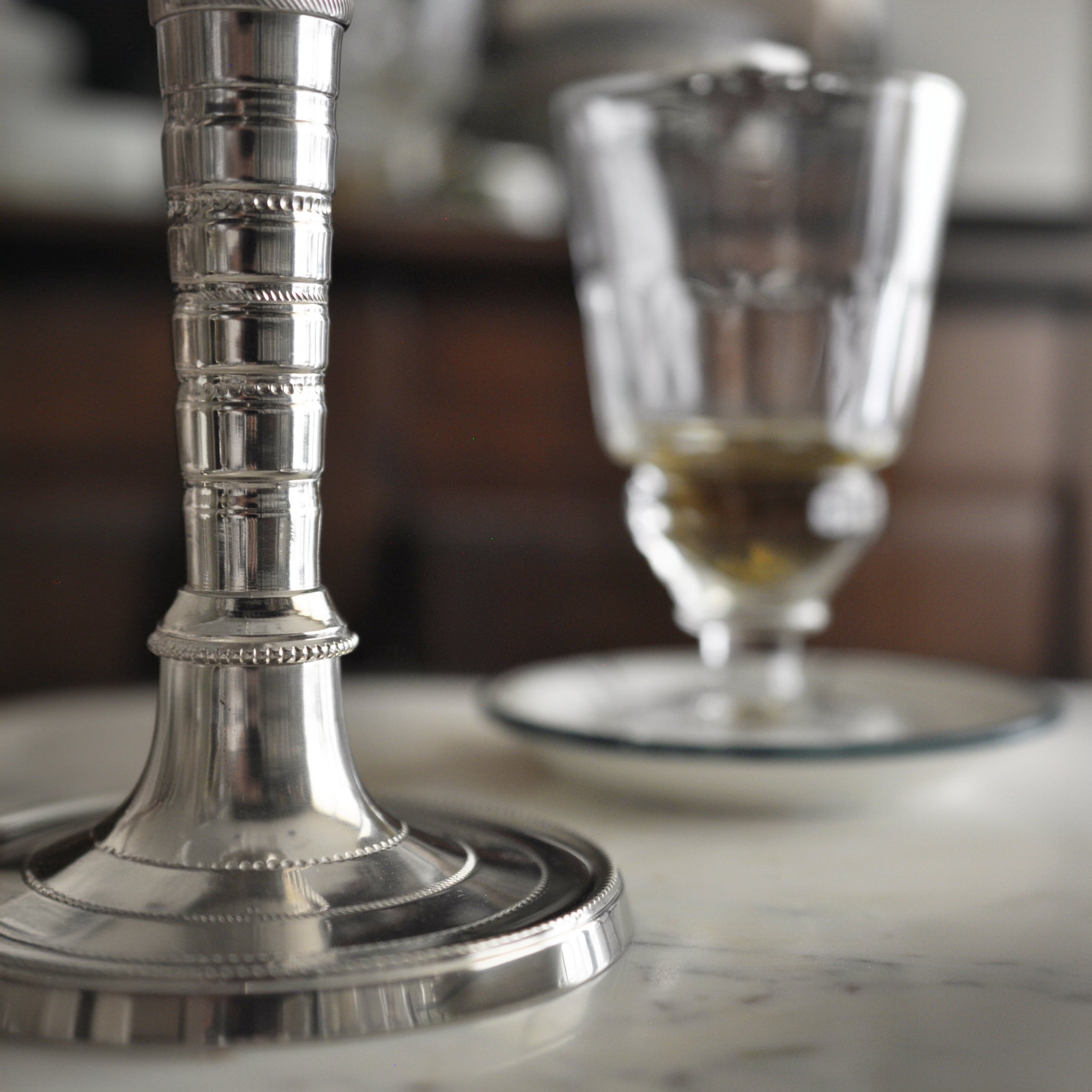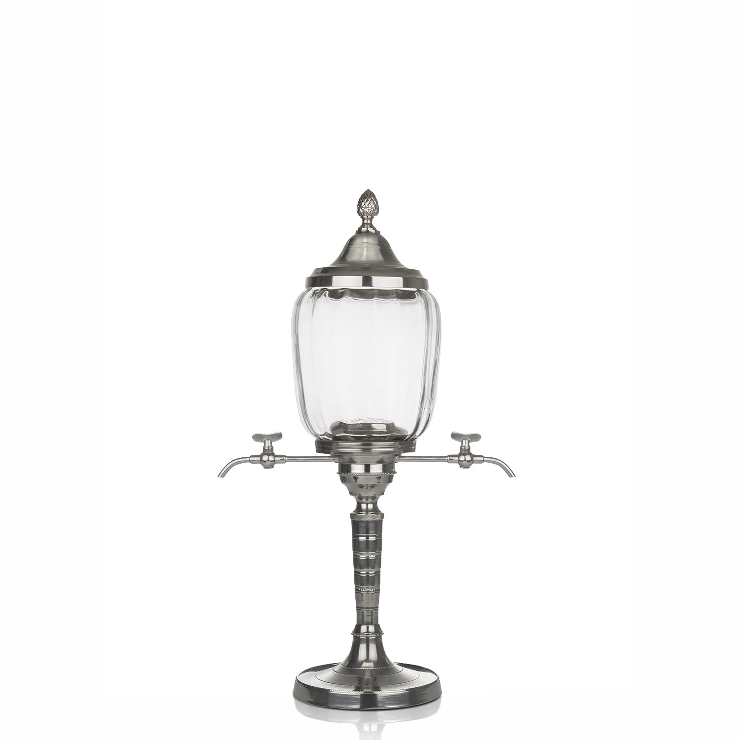 Fidèle reproduction de la fontaine à absinthe Belle Époque du XIXe siècle grace à ses deux robinets, elle est ornée du couvercle "ananas". Ce couvercle est amovible afin de pouvoir ajouter de l'eau glacée dans le bol en verre, qui comprend un filtre à eau. L'ananas symbolise l'hospitalité et l'amitié. Conçues de façon artisanale, les fontaines sont faites à la main. Soufflé à la bouche le bol en verre est sumonté d'un placage chromé sur le laiton. Elle est munie de deux robinets en métal, ce qui perm-et à la fontaine d'accueillir un ou deux verres en même temps.