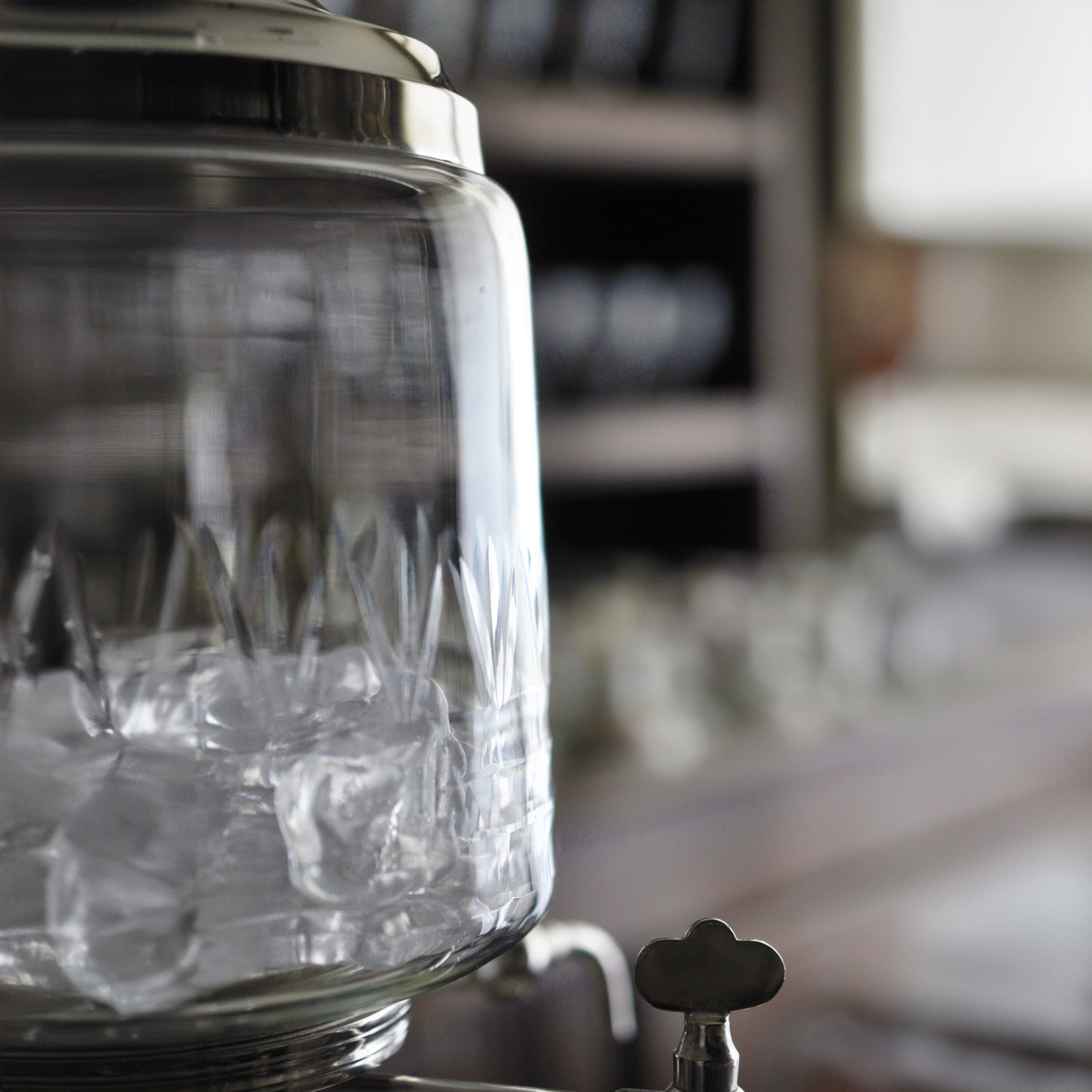 Après utilisation, il est recommandé de laisser le globe en verre s'adapter à la température ambiante avant de le laver. Si vous prévoyez d'utiliser la fontaine uniquement avec de l'eau, faites couler de l'eau tiède ou à température ambiante dans les robinets, puis laissez l'eau s'écouler des robinets et du globe en verre. Ouvrez tous les becs, retournez la fontaine et placez-la sur un torchon de cuisine pour la laisser sécher complètement.