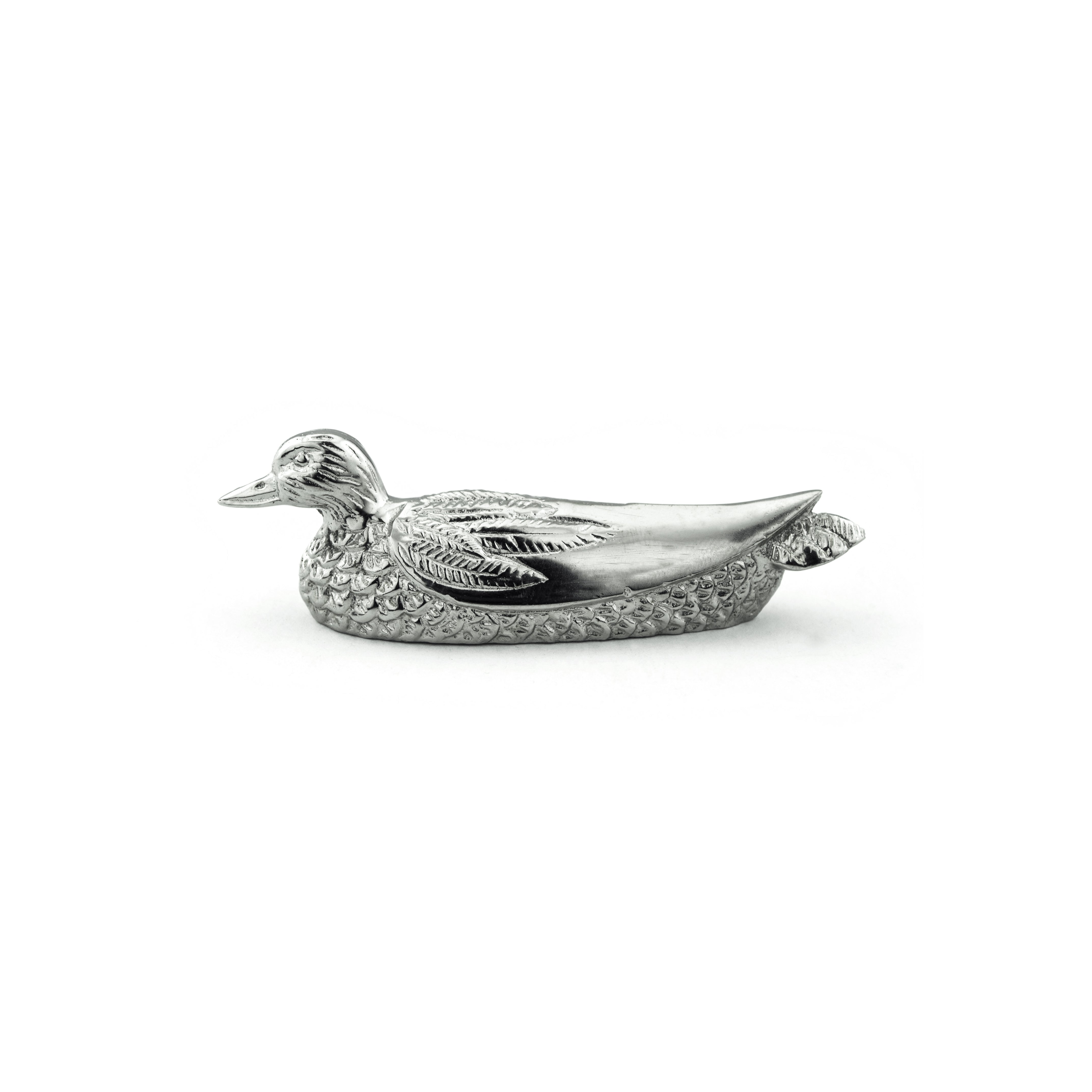 Nos porte-couteaux en étain sont à la fois attrayants et pratiques en offrant un endroit pour reposer votre couteau pendant que vous mangez. Lorsqu'ils ne se servent pas de leur couteau à table, beaucoup de gens se rendent compte qu'il n'y a pas d'autre endroit pour poser leur couteau que sur le côté de leur assiette. Non seulement cette situation est peu attrayante, mais en plus, le couteau glisse souvent de l'assiette, salissant la table ou la nappe. Cette reproduction d'un porte-couteau français d'époque apporte une solution intéressante à ce problème et constitue un merveilleux moyen de compléter un service de table.