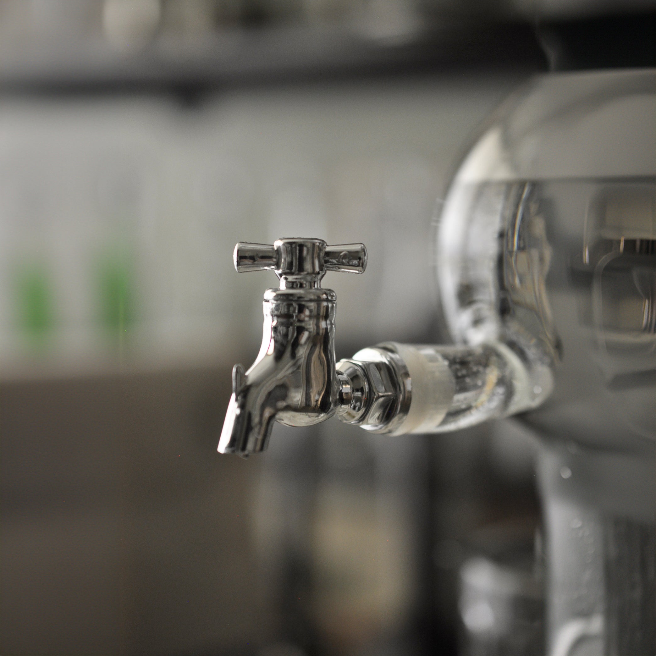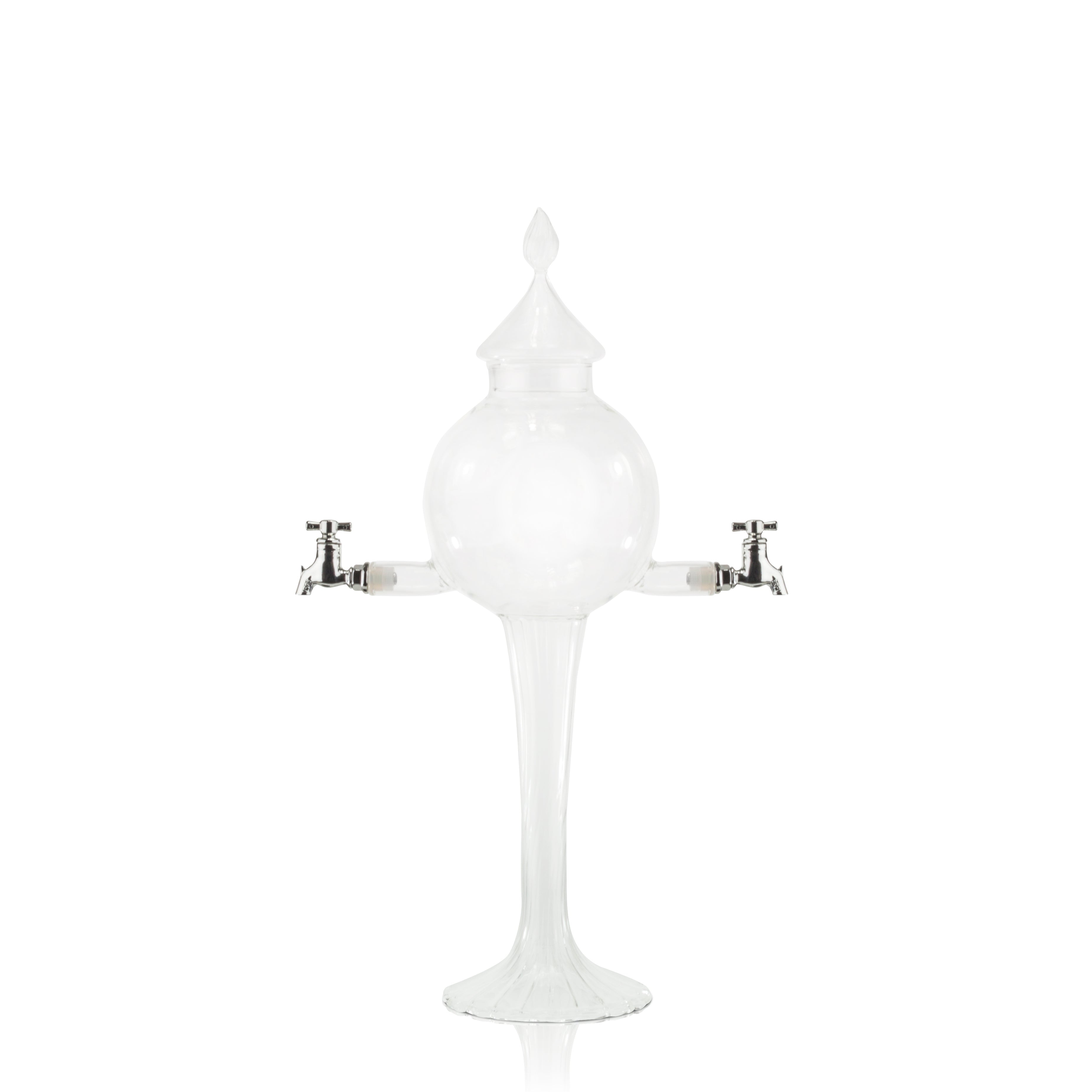 Cette fontaine en verre soufflé à la bouche est parfaite pour faire couler l'eau utilisée dans un rituel traditionnel de l'absinthe. En tournant le robinet de la fontaine, la quantité d'eau peut varier d'une goutte lente à un léger jet.