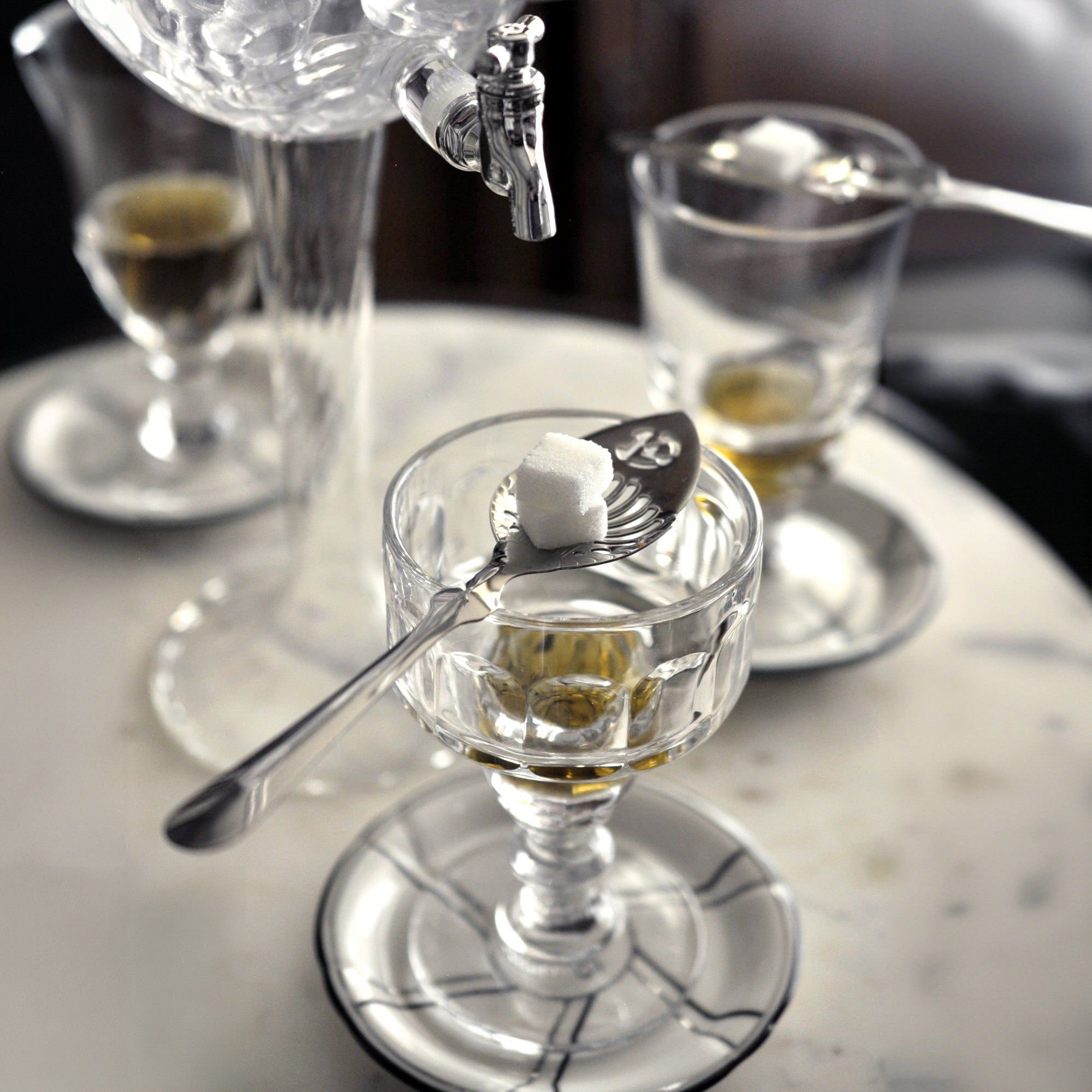 L'utilisation correcte consiste à verser une quantité d'absinthe (généralement une once) dans un verre à absinthe, à poser une cuillère à absinthe sur le dessus du verre et à placer un morceau de sucre sur la cuillère.