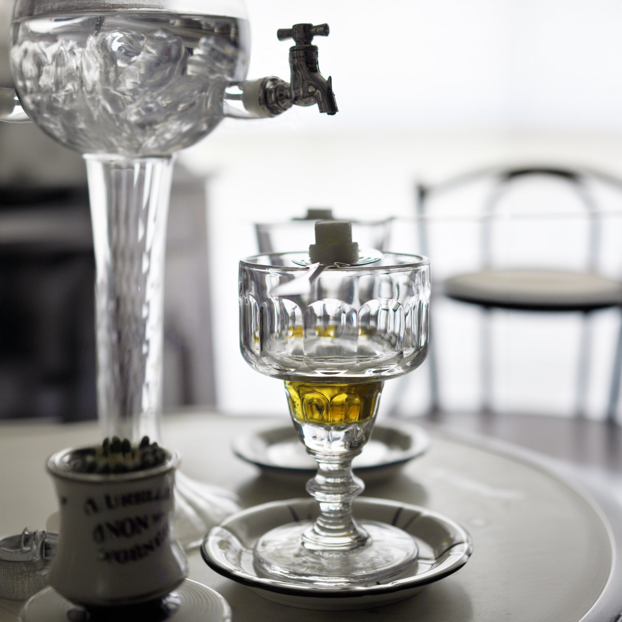 Le rapport de boisson varie de 1 partie d'absinthe pour 3 à 5 parties d'eau, selon les préférences de chacun.