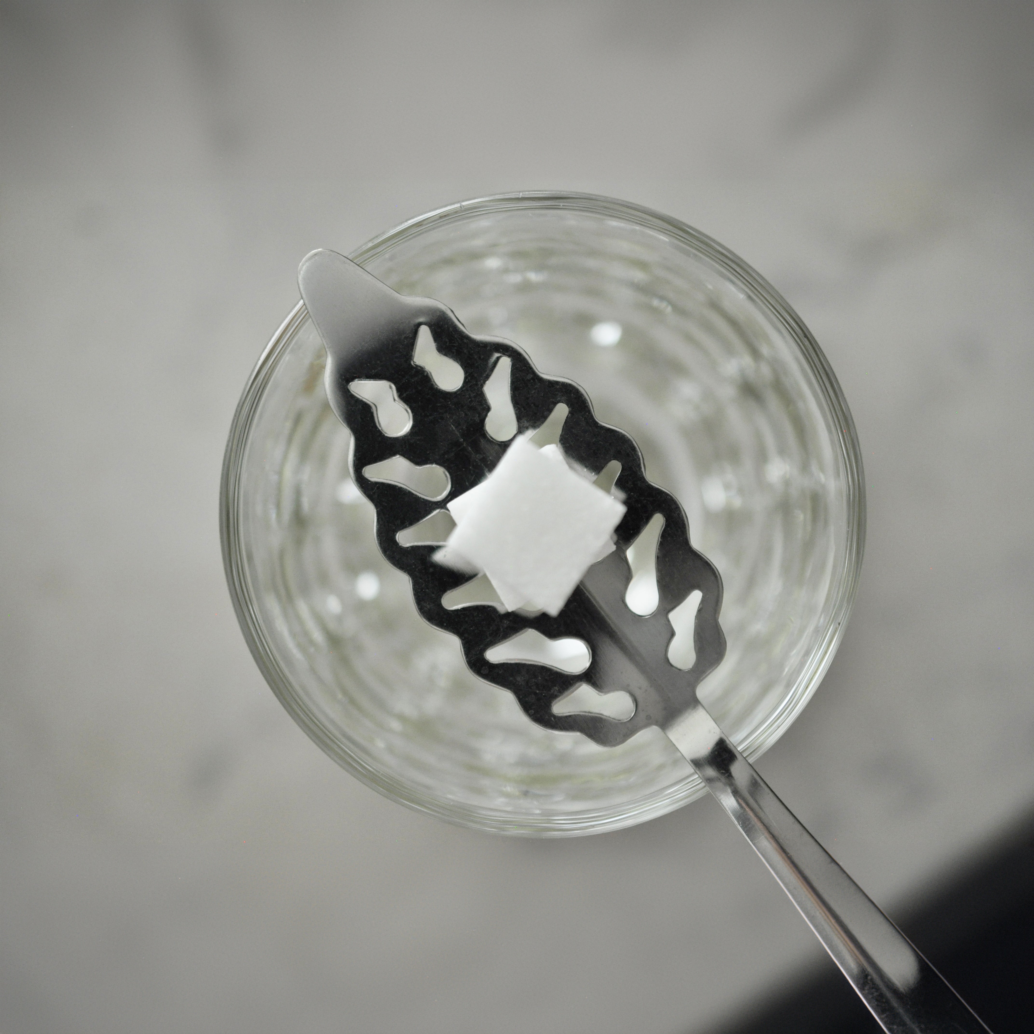 Une absinthe traditionnelle est préparée en versant une dose d'absinthe (généralement une once) dans un verre à absinthe, puis en plaçant une cuillère à absinthe sur le dessus du verre et un morceau de sucre sur la cuillère. De l'eau glacée est versée lentement ou goutte à goutte d'une fontaine ou d'une carafe sur le sucre. L'eau dissout le sucre, et le mélange froid et sucré tombe de la cuillère dans le verre d'absinthe, libérant des huiles essentielles et parfumant l'air.
