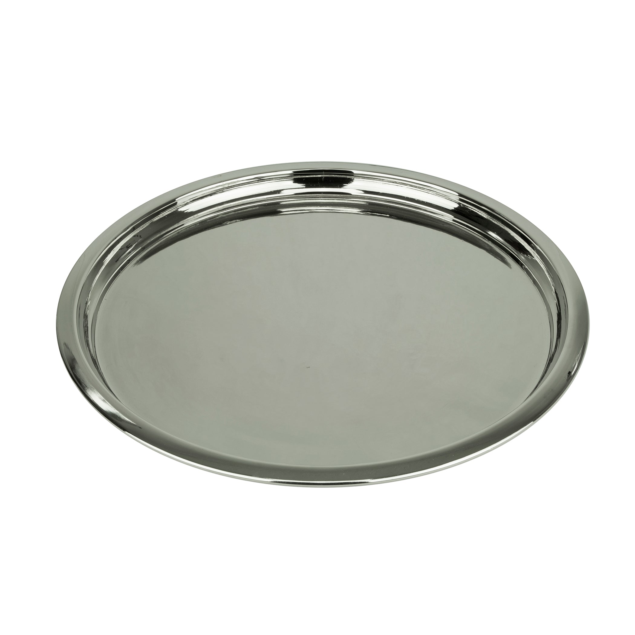 Le plateau est suffisamment grand pour contenir une fontaine, des verres et des soucoupes, entre autres accessoires. Fabriqué en métal plaqué sur laiton, ce plateau pratique est aussi attrayant que fonctionnel.