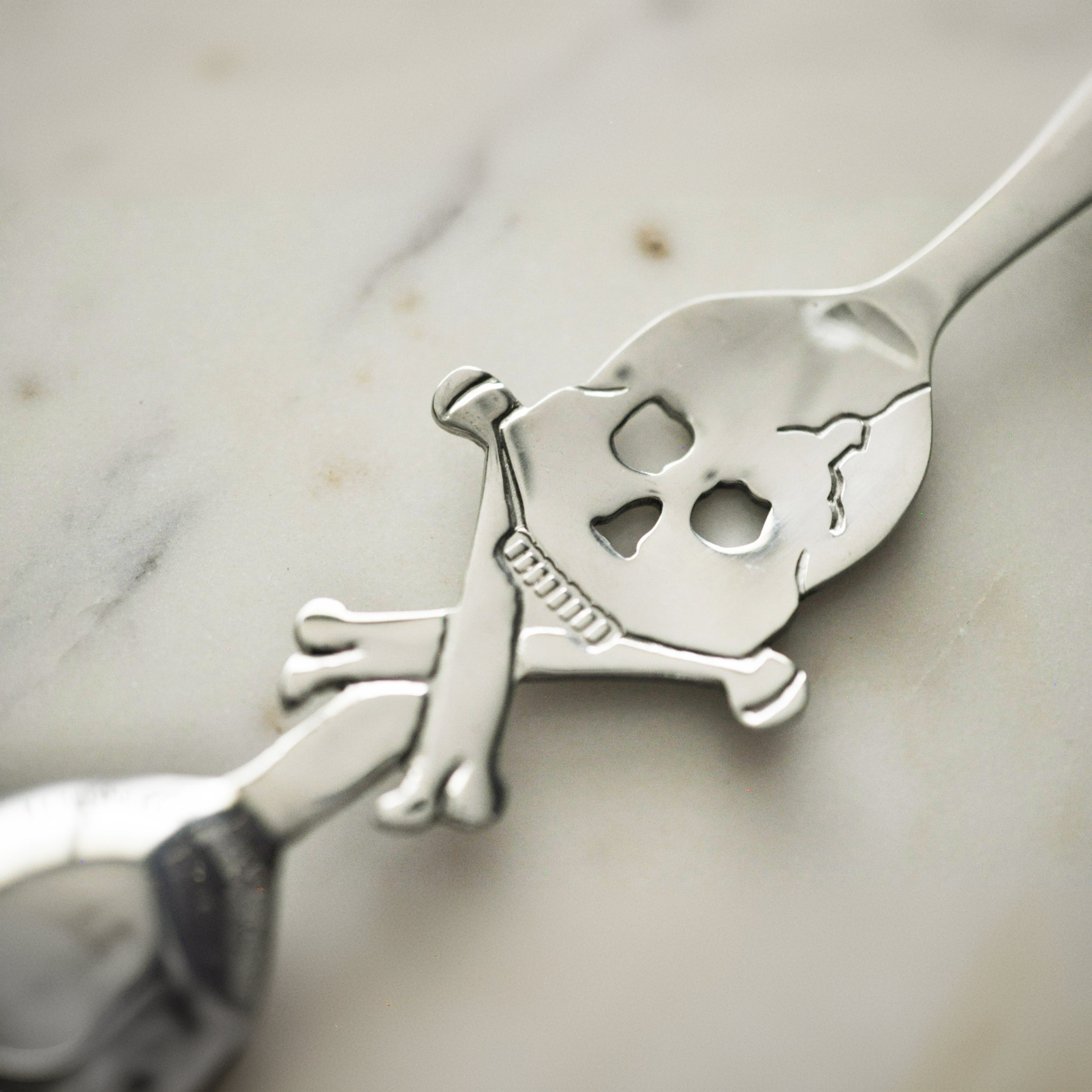 Si les pirates avaient bu de l'absinthe, je suis sûr que c'est ce qu'ils auraient utilisé. Cette cuillère à absinthe populaire est munie d'un crâne et d'os croisés sur le grill, utilisés pour retenir le sucre dans la préparation d'une absinthe française traditionnelle. C'est l'une de nos plus longues cuillères, qui peut s'adapter à presque tous les verres.