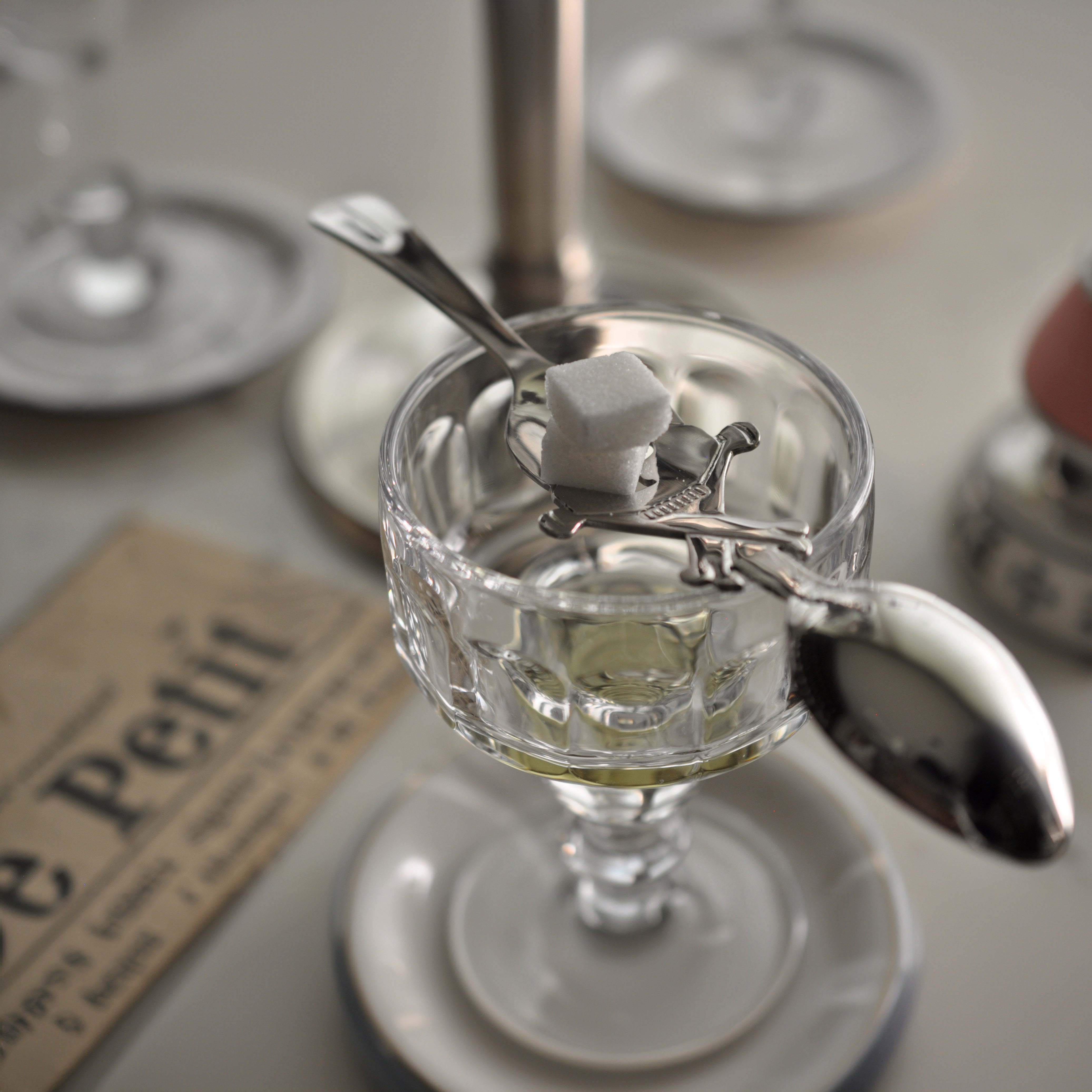 Une absinthe traditionnelle est préparée en versant une dose d'absinthe (généralement une once) dans un verre à absinthe, puis en plaçant une cuillère à absinthe sur le dessus du verre et un morceau de sucre sur la cuillère. De l'eau glacée est versée lentement ou goutte à goutte d'une fontaine ou d'une carafe sur le sucre. L'eau dissout le sucre, et le mélange froid et sucré tombe de la cuillère dans le verre d'absinthe, libérant des huiles essentielles et parfumant l'air.