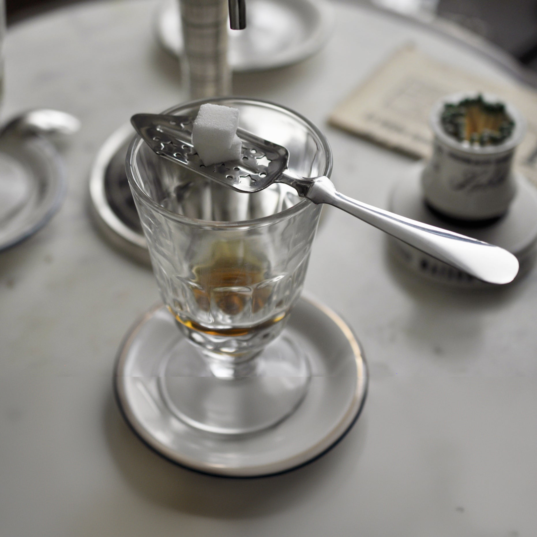 Une fois que le sucre s'est dissous de la cuillère, l'absinthe peut être dégustée, et la force et la douceur peuvent être ajustées en ajoutant plus d'eau ou de sucre, selon le goût. Le rapport de mélange dépend du goût de chacun - généralement 1 volume d'absinthe pour 3 à 5 volumes d'eau.