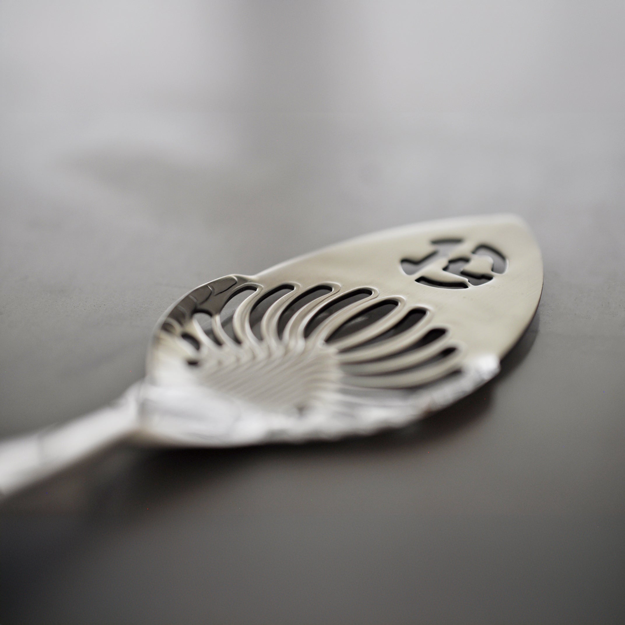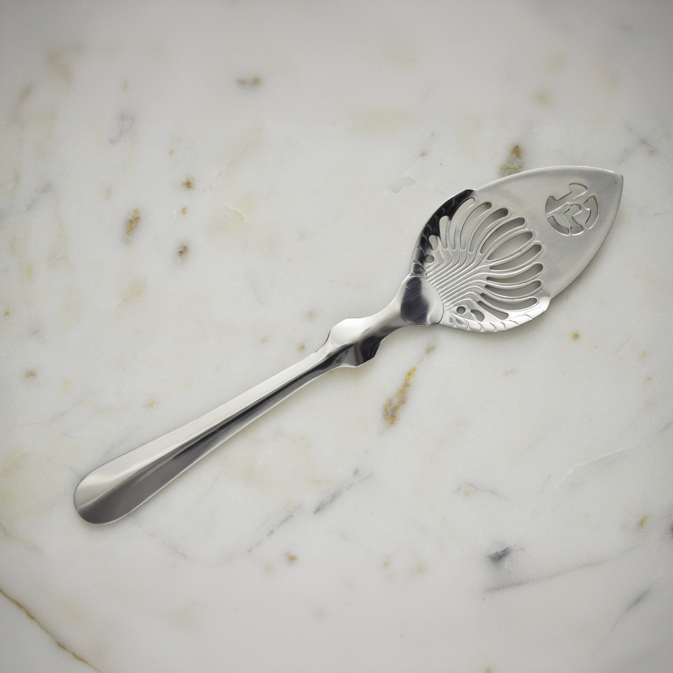 L'une de nos cuillères à absinthe les plus populaires, cette cuillère est fabriquée en acier inoxydable de haute qualité avec une grande définition de ligne. La cuillère a été conçue à l'origine pour Toulouse Lautrec et porte l'insigne des célèbres initiales de Lautrec en haut du gril. Lautrec aimait tellement l'absinthe qu'il a fait construire un compartiment spécial à l'intérieur de son "bâton de marche" pour contenir un flacon d'absinthe. L'original est l'une des plus rares cuillères à absinthe anciennes. Il s'agit d'une reproduction exacte de cette cuillère à absinthe de la fin du XIXe siècle.