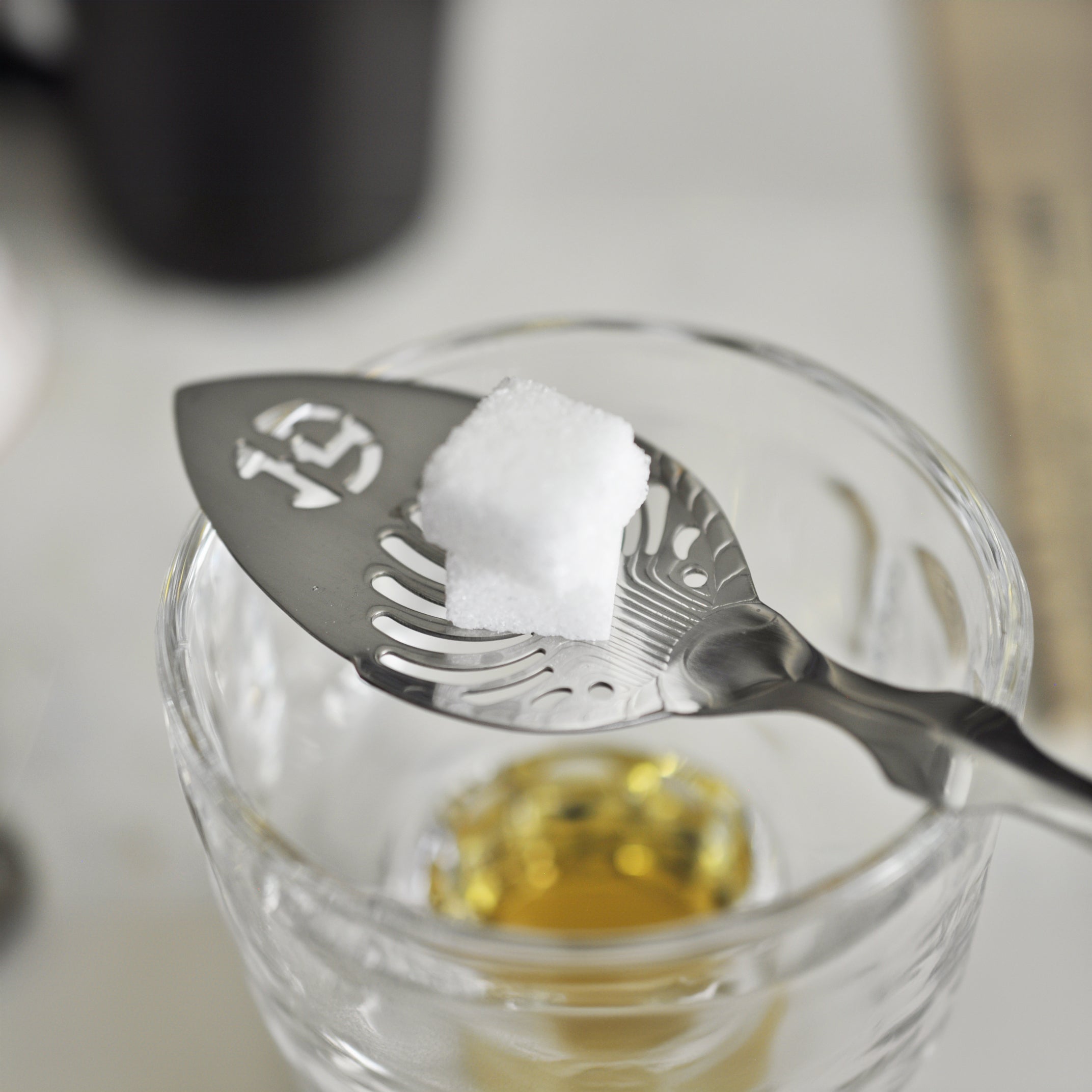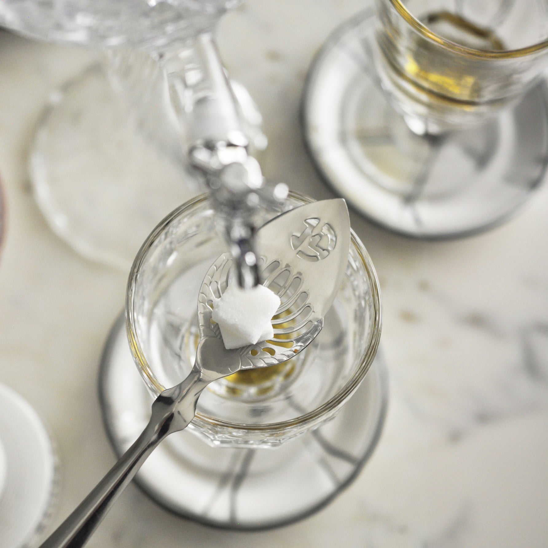 Cette cuillère est utilisée dans la préparation d'une absinthe traditionnelle française ou suisse. Une absinthe traditionnelle est préparée en versant une once d'absinthe dans un verre à absinthe, puis en plaçant la cuillère à absinthe sur le verre et un morceau de sucre sur la cuillère. De l'eau glacée s'écoule lentement d'une fontaine, d'une carafe ou d'un balancier sur le morceau de sucre. L'eau sucrée froide s'écoule ensuite de la cuillère dans le verre d'absinthe, libérant des huiles et parfumant l'air avec du fenouil, de la grande absinthe et de l'anis. La combinaison commence également à prendre une couleur blanc laiteux, car l'eau se mélange à l'anis.