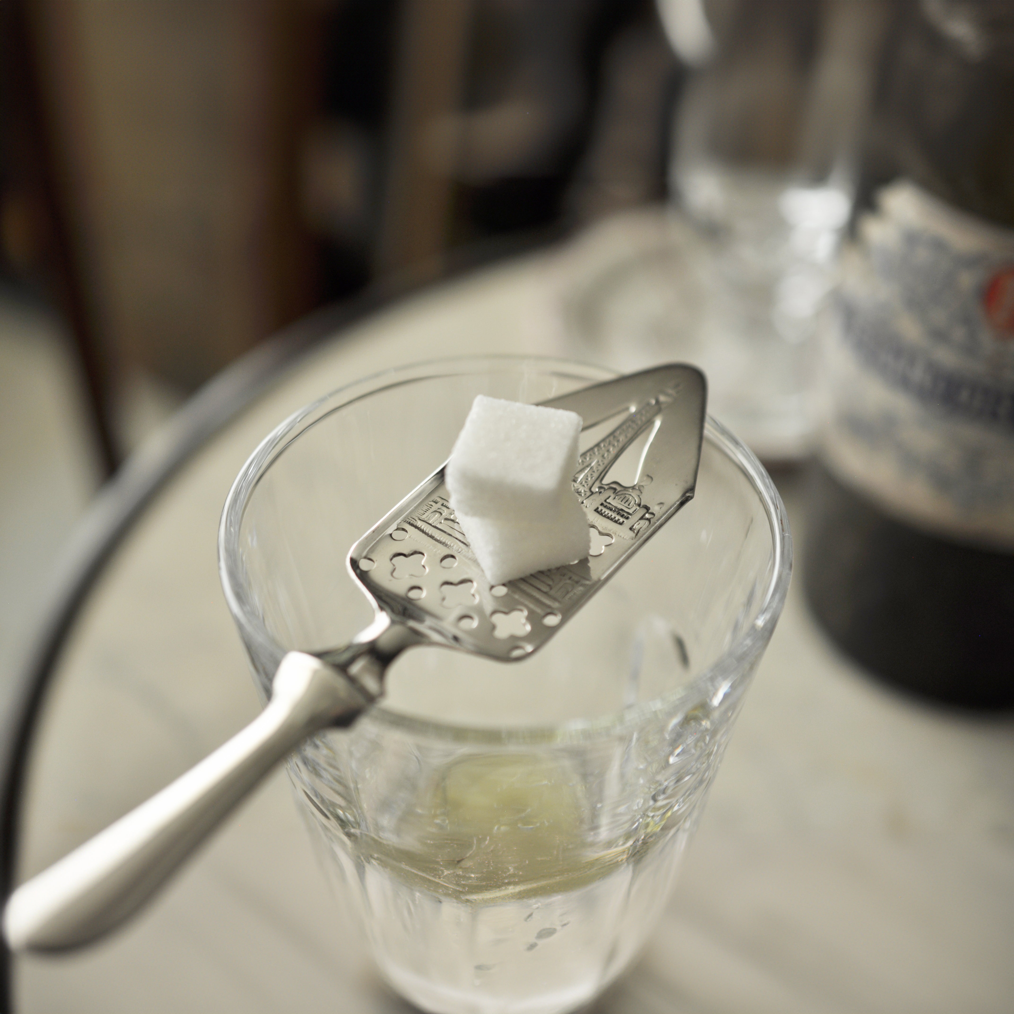 Cette cuillère est utilisée dans la préparation d'une absinthe traditionnelle française ou suisse. Une absinthe traditionnelle est préparée en versant une once d'absinthe dans un verre à absinthe, puis en plaçant la cuillère à absinthe sur le dessus du verre et un morceau de sucre sur la cuillère. De l'eau glacée s'écoule lentement d'une fontaine, d'une carafe ou d'un balancier sur le morceau de sucre. L'eau sucrée froide s'écoule ensuite de la cuillère dans le verre d'absinthe, libérant des huiles et parfumant l'air avec du fenouil, de la grande absinthe et de l'anis. La combinaison commence également à prendre une couleur blanc laiteux, car l'eau se mélange à l'anis.