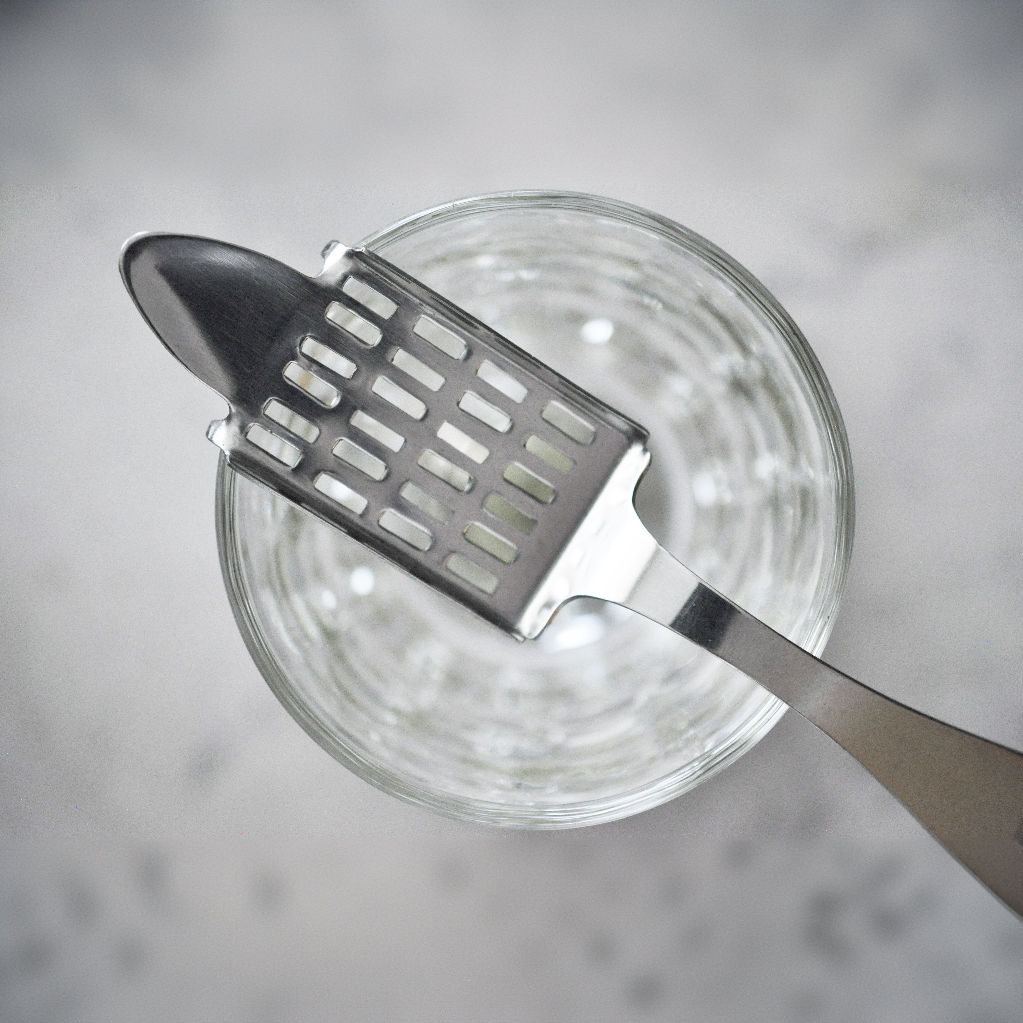 Cette cuillère est utilisée dans la préparation d'une absinthe traditionnelle française ou suisse.