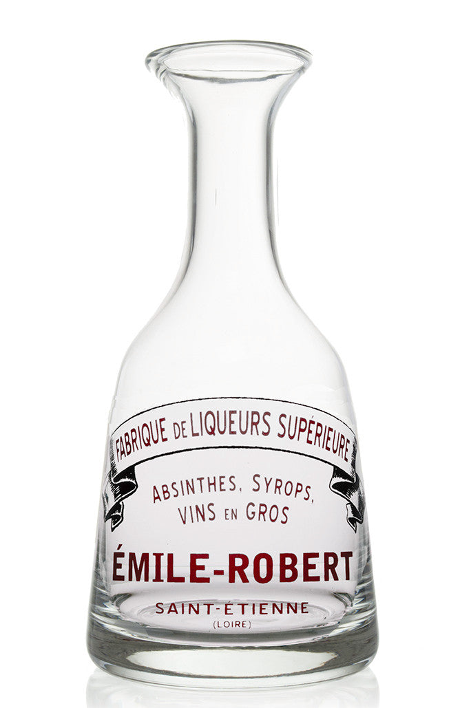 Cette carafe est une reproduction des carafes soufflées à la bouche et fabriquées à la main que l'on trouvait couramment dans les bars et bistrots européens au cours du 19e et du début du 20e siècle. Ces carafes étaient utilisées par les clients pour préparer leurs propres boissons, en particulier l'absinthe, en y ajoutant de l'eau. Elles étaient également utilisées comme outils promotionnels par les fabricants d'alcool.