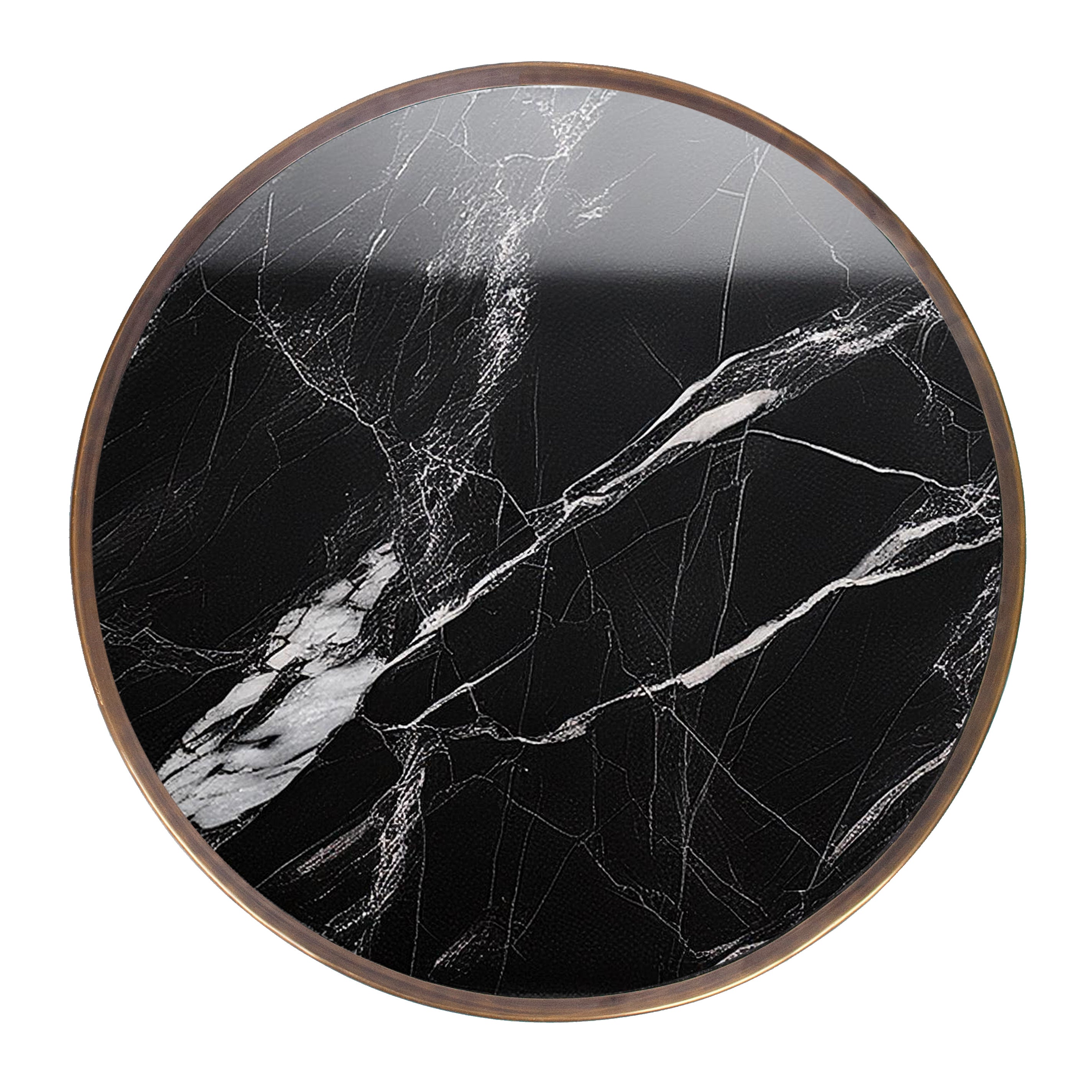 Le bord de la table est entouré d'une bande de laiton sans soudure, antiquée, et scellée. Cette bande protège le bord de la pierre contre l'écaillage et les dommages. Nous avons reproduit le processus de construction des tables de bistrot françaises de la fin du XIXe siècle, y compris les mêmes détails ornementaux et la façon dont le marbre est fixé à la table. La tige et le pied sont recouverts d'un revêtement en poudre.