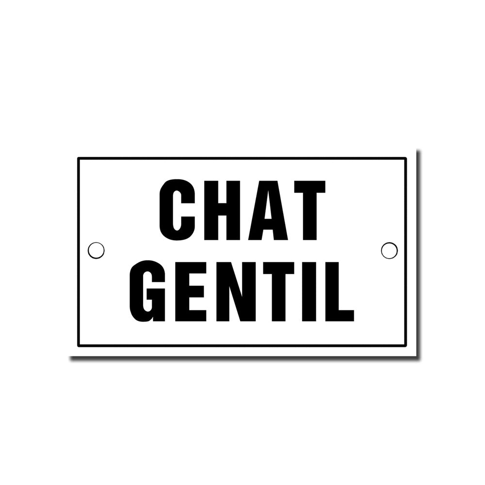 Cette plaque métallique en français permet à vos visiteurs de savoir que votre chat est amical.