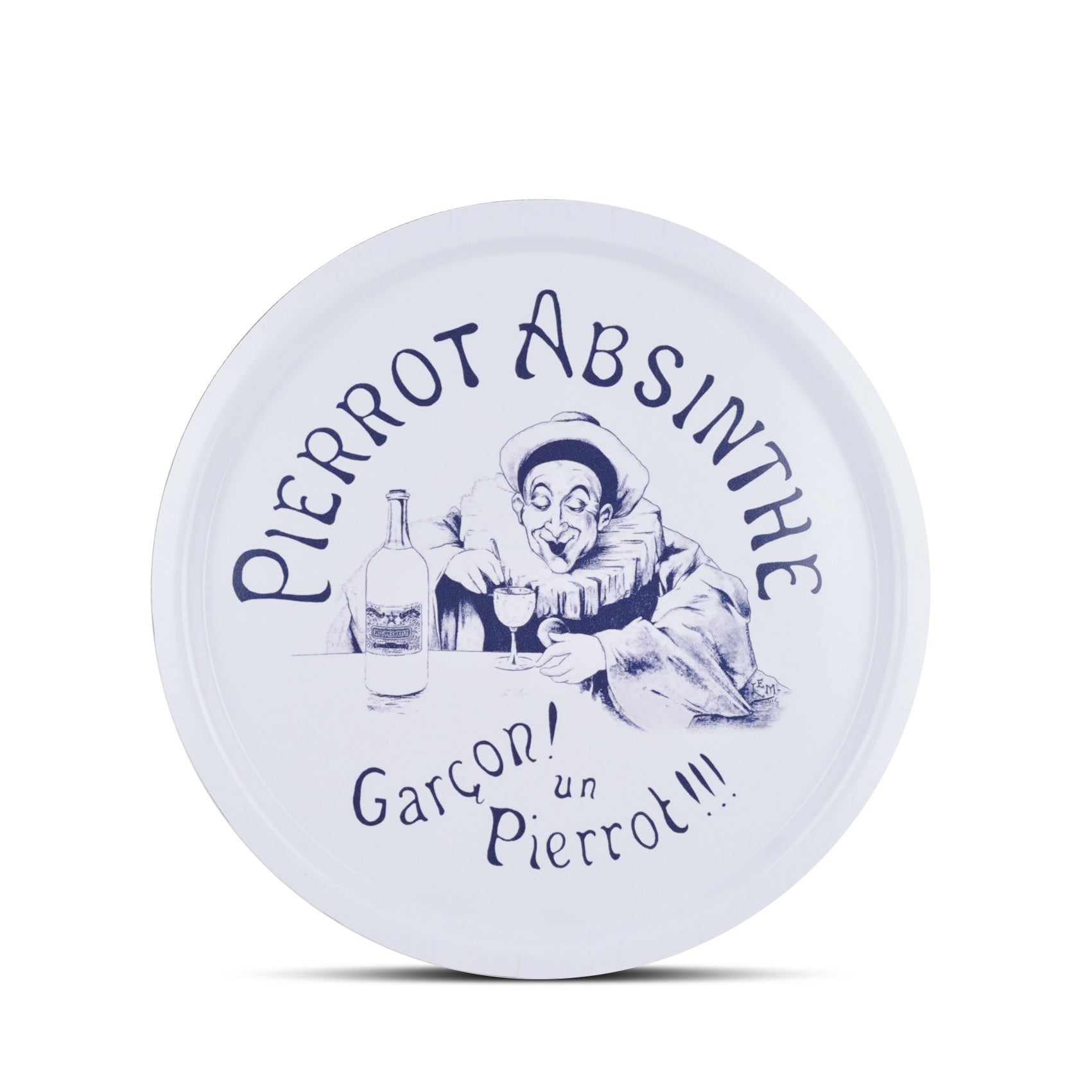 Notre plateau de service Pierrot Absinthe est fabriqué à Pontarlier, en France, une petite ville située à l'est du pays, à la frontière de la Suisse. La grande capacité de notre plateau de 31 cm de diamètre est idéale pour accueillir une variété de tailles d'assiettes et de bols, ainsi qu'une gamme variée de bouteilles, de verres ou de carafes. Le plateau est fabriqué en mélamine légère de haute qualité et offre une durabilité supérieure et une manipulation aisée. Il est également résistant aux rayures et aux éclats.