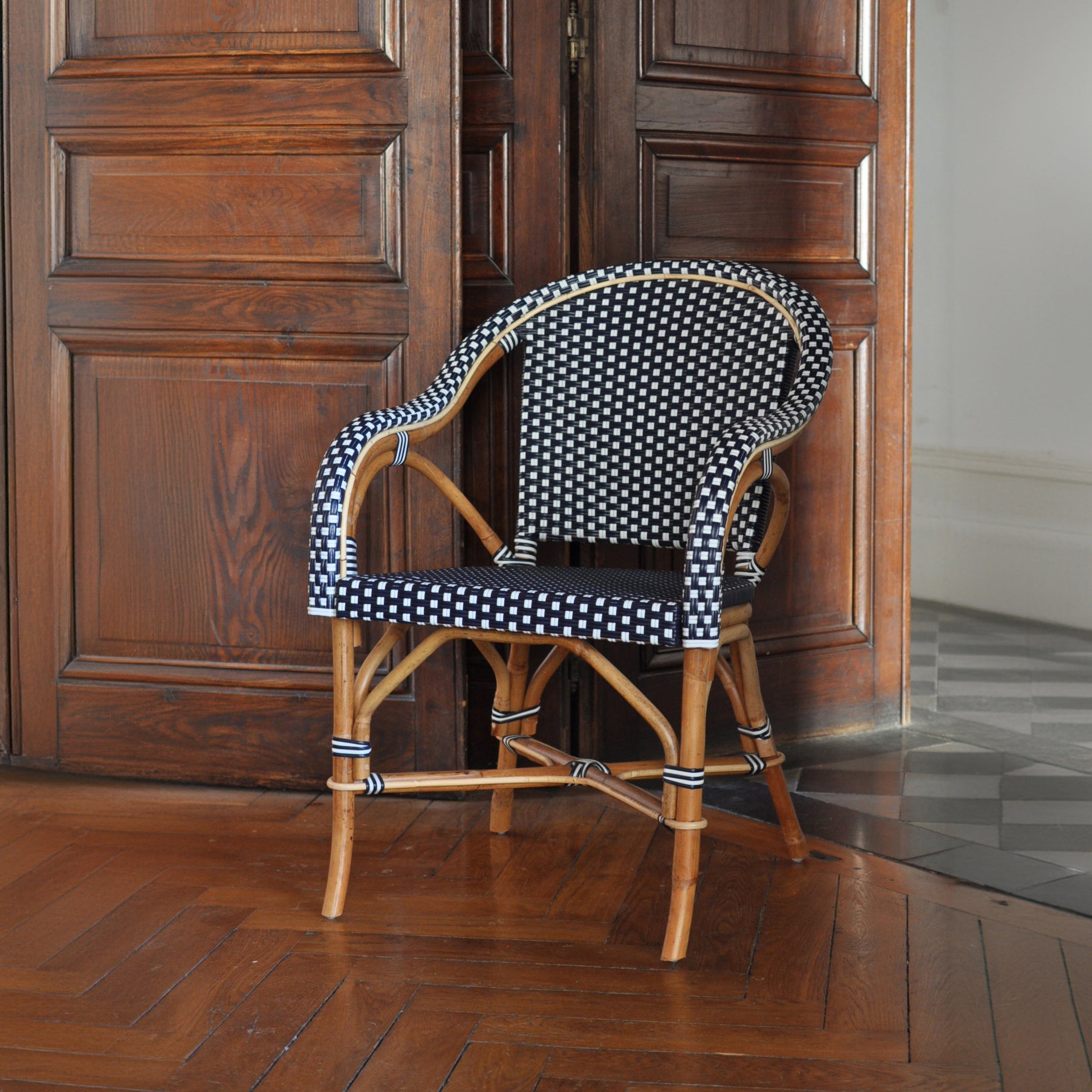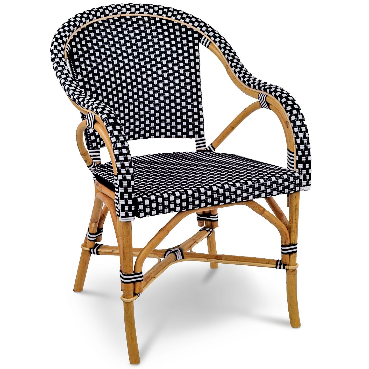 Fauteuil Paris French Bistro en Rotin - Petits Carrés - Noir/Blanc