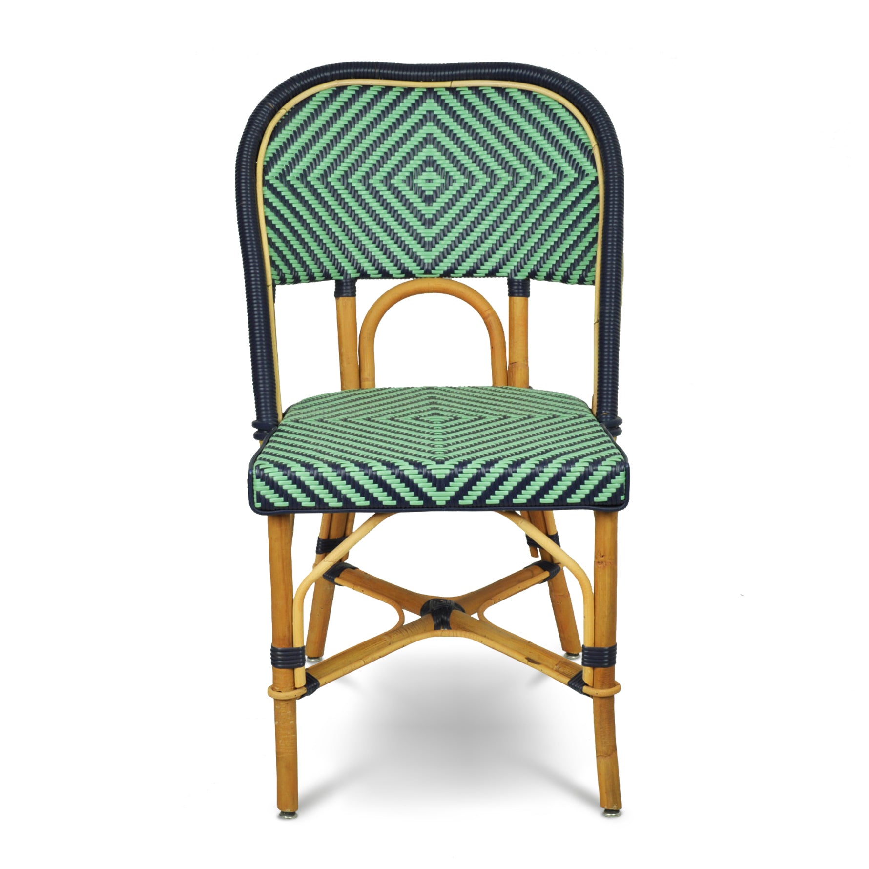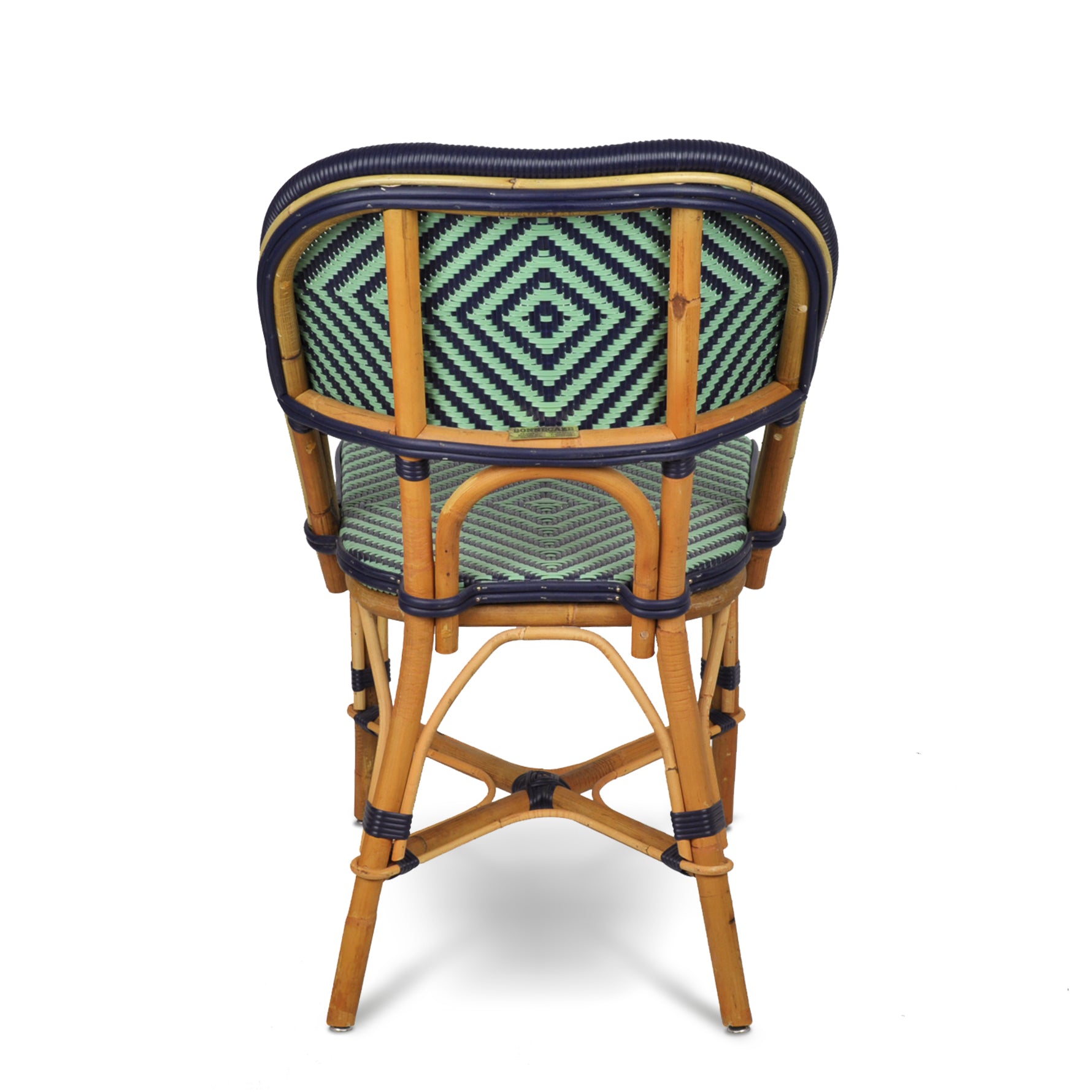 Chaise Bistrot en Rotin Valence - Diamants, Grande - Jade/Bleu Marine - Tissage Simple - Bleu Marine