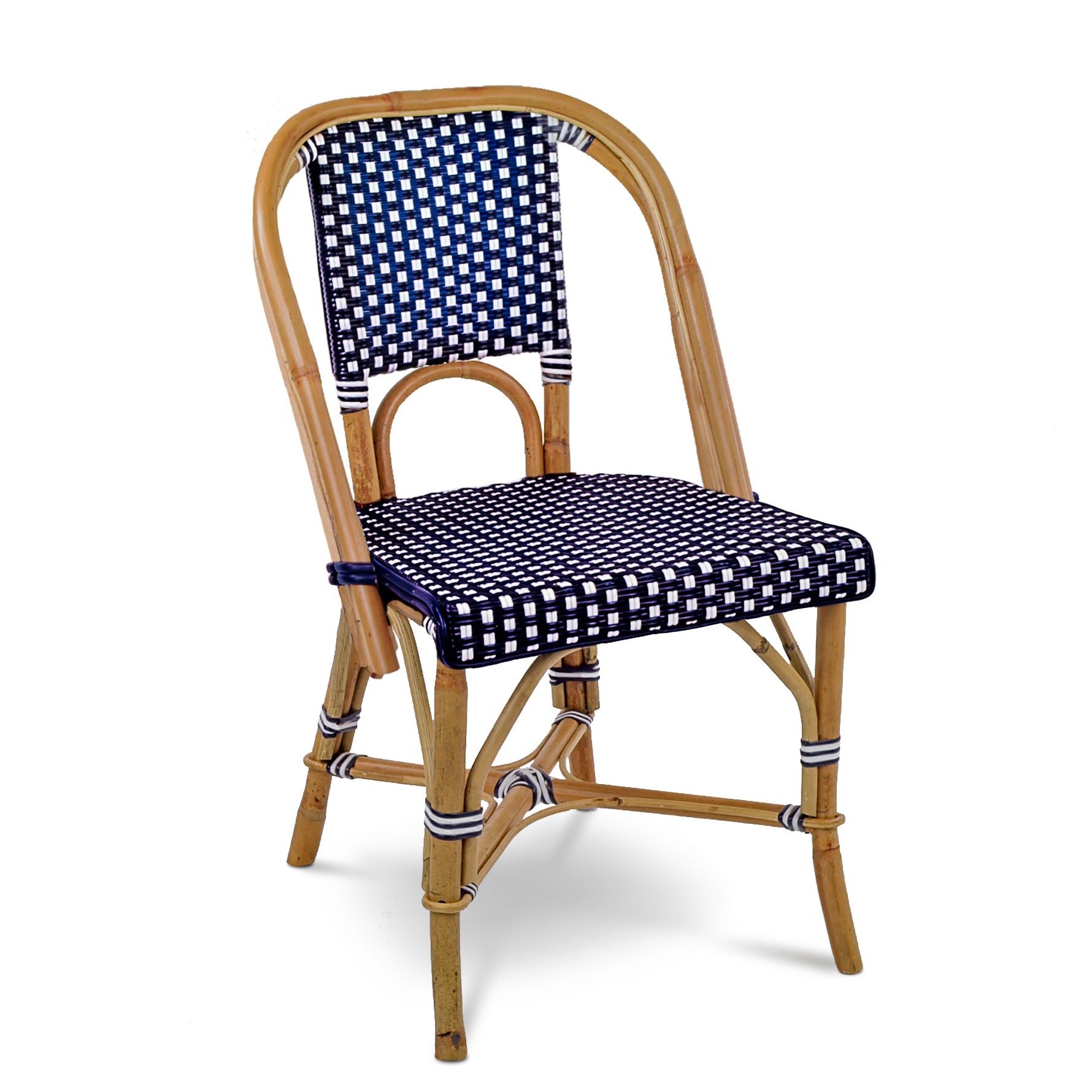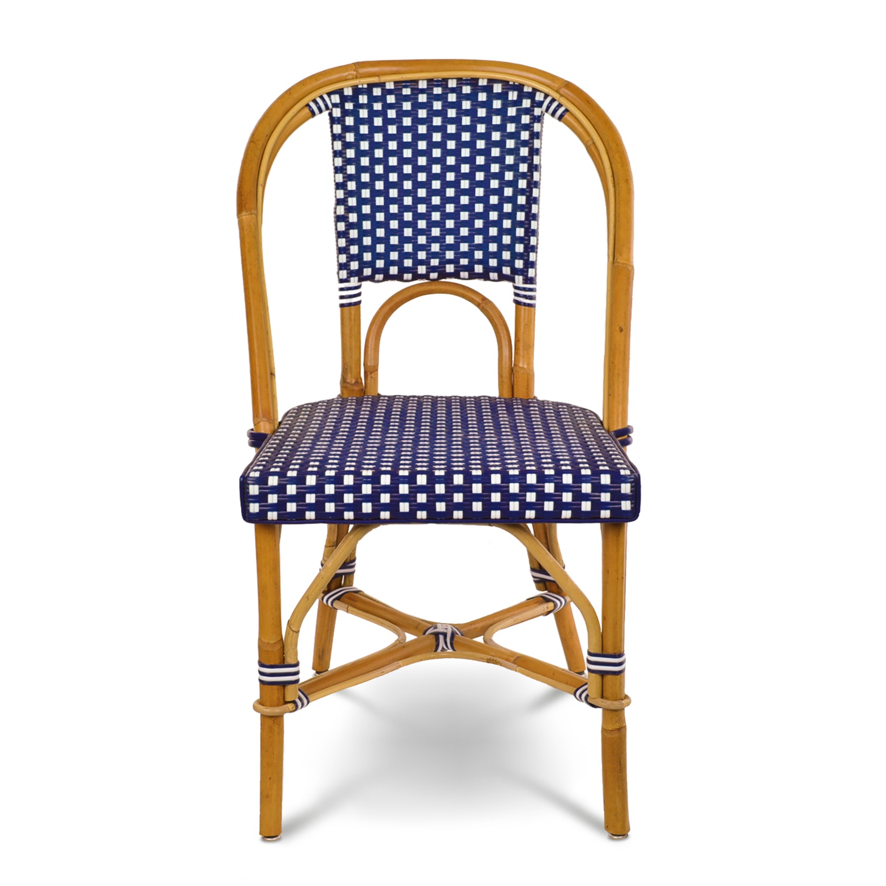 Chaise de Bistrot Française en Rotin Lyon - Petits Carrés - Bleu Marine/Blanc