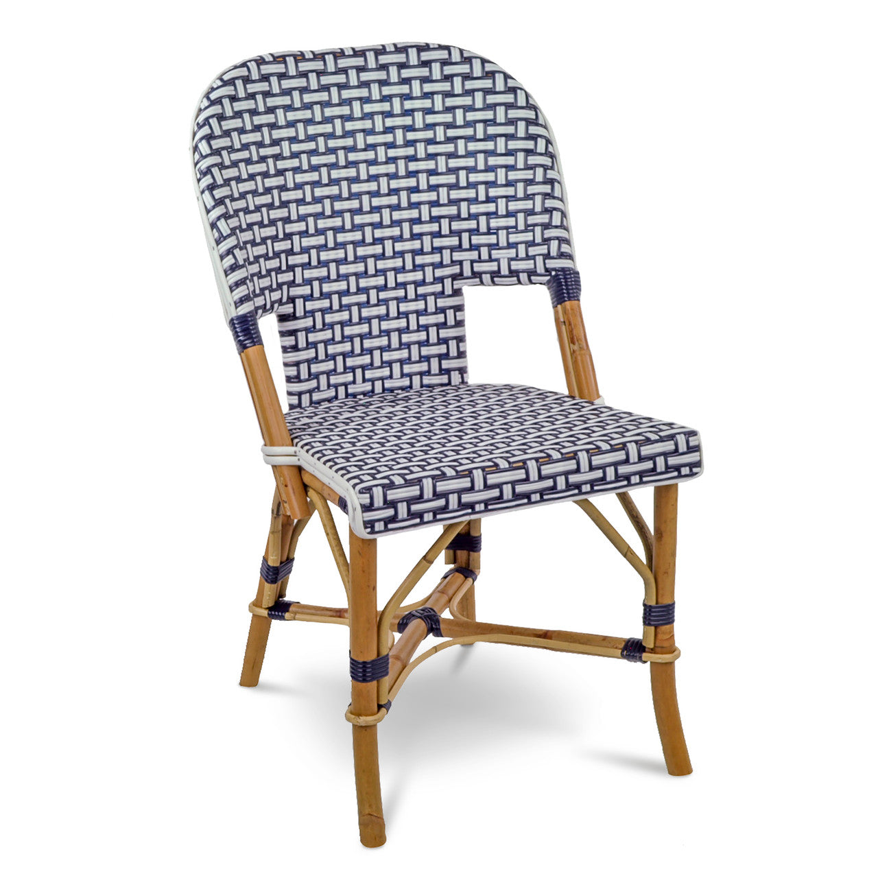 Chaise de Bistrot Française en Rotin Saint Tropez - Tressage - Bleu Marine/Blanc