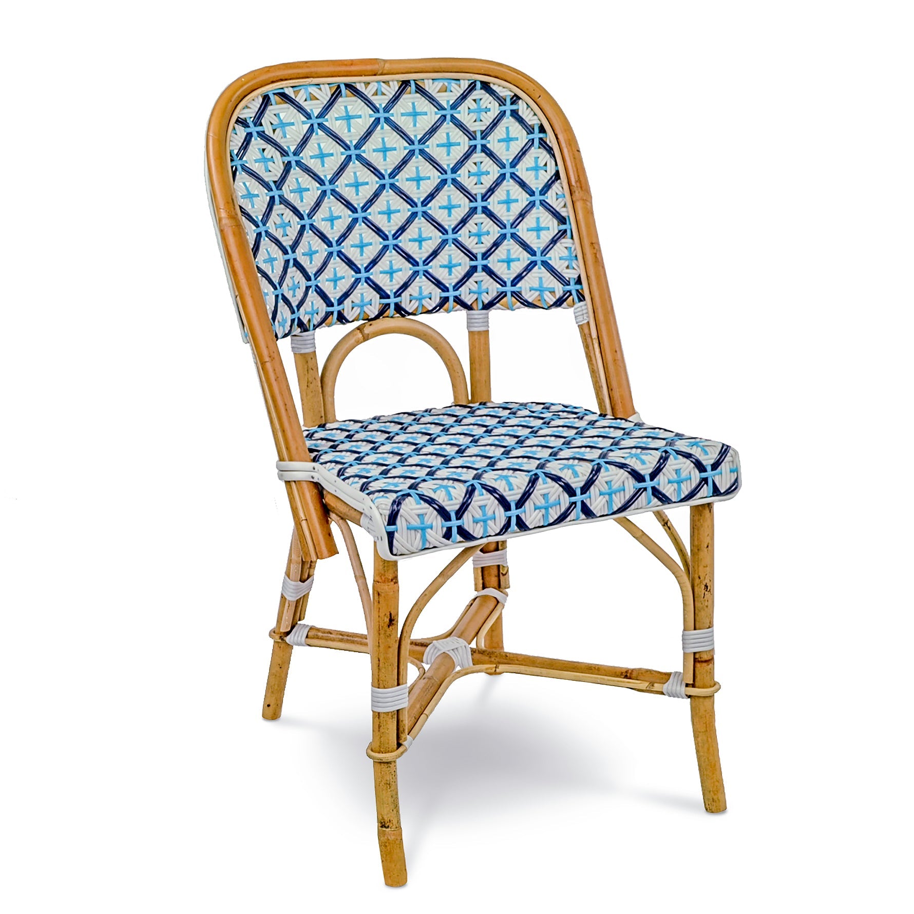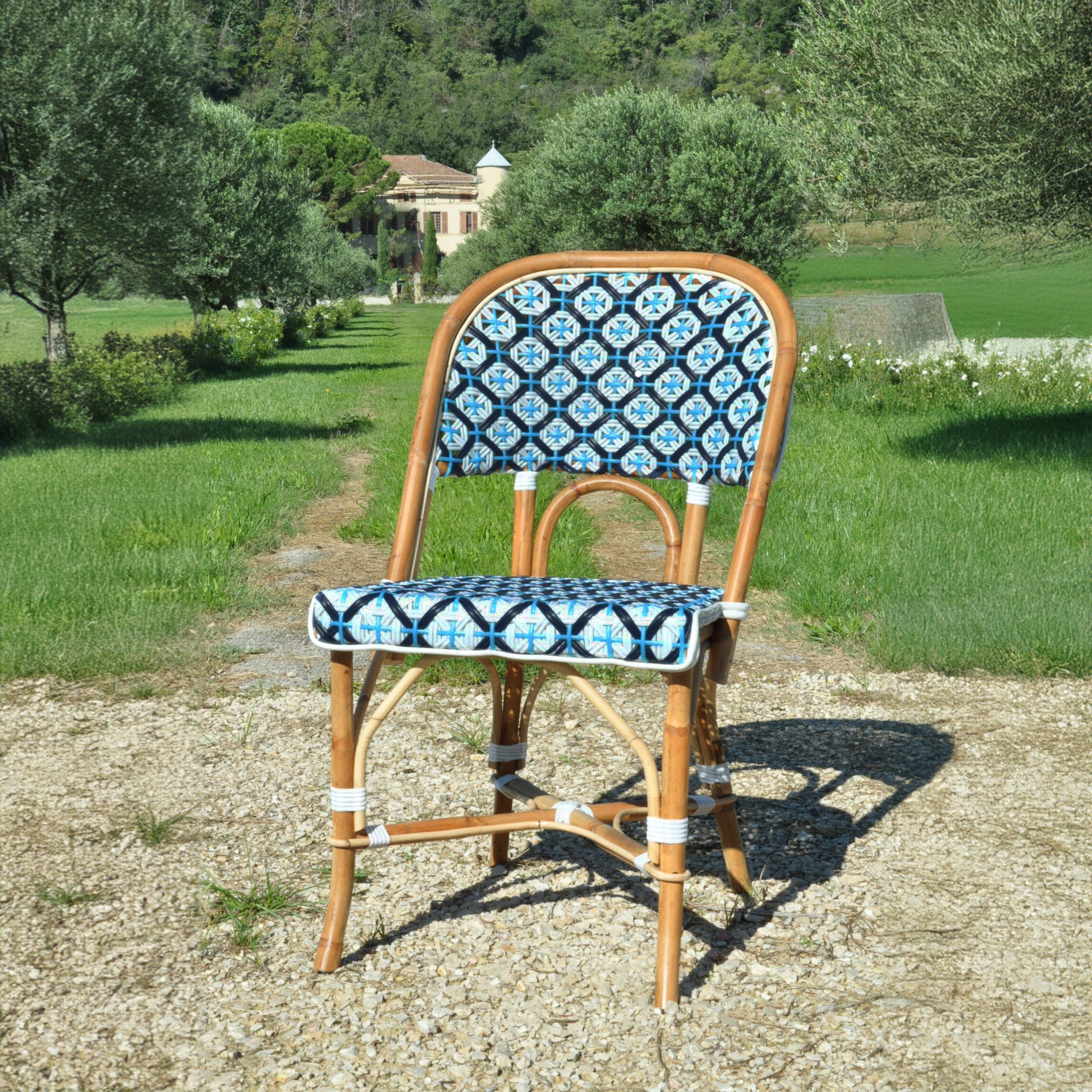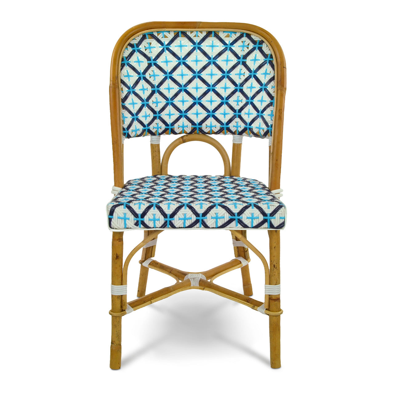 Chaise de Bistrot Française en Rotin Valence - Les Croix - Blanc/Bleu Marine/Bleu Ciel