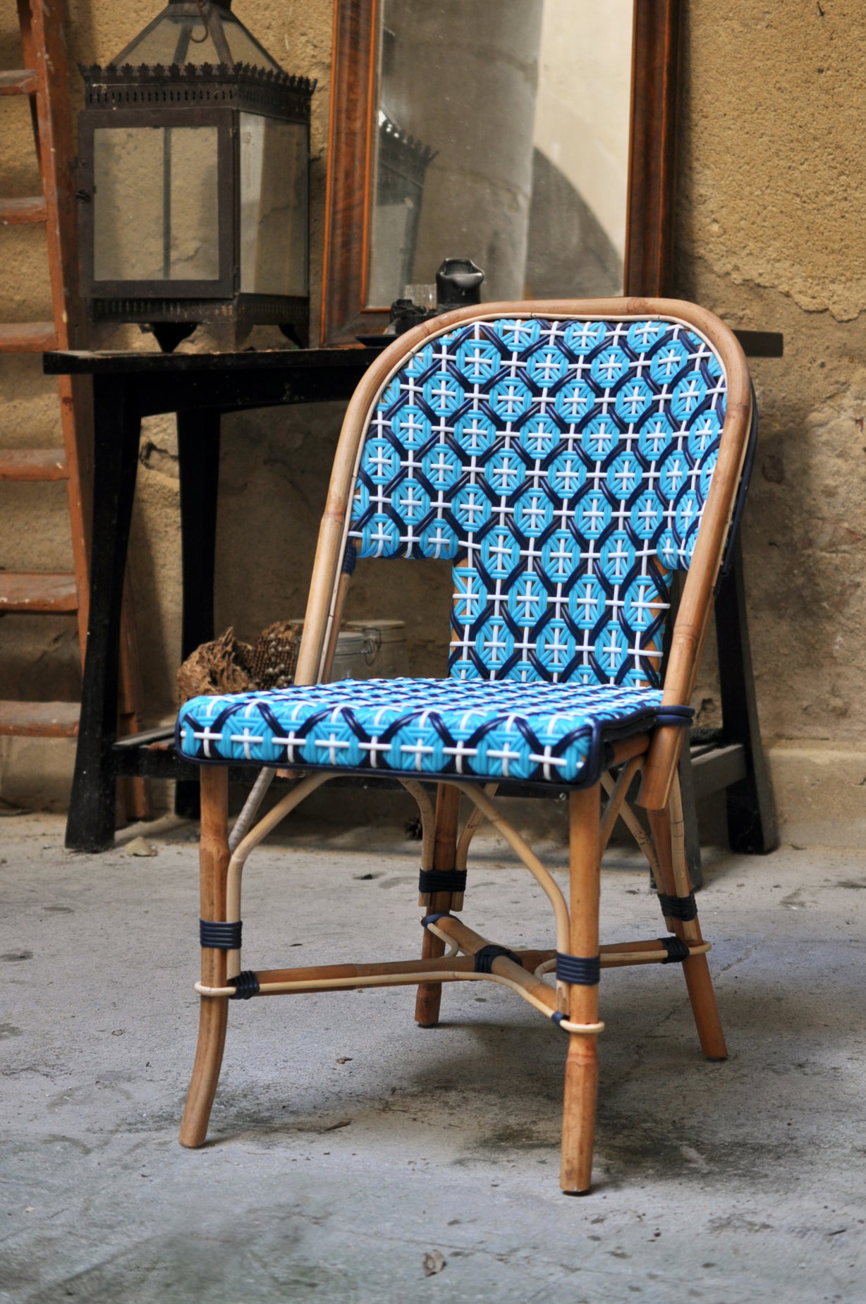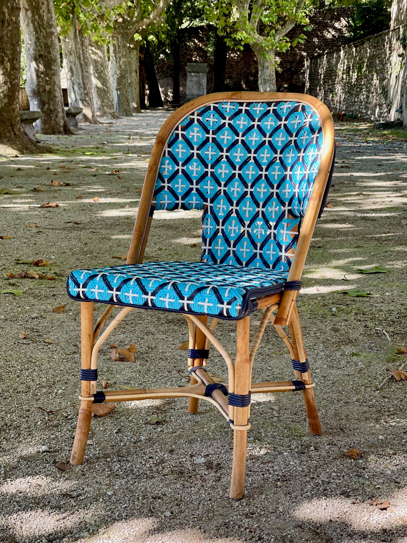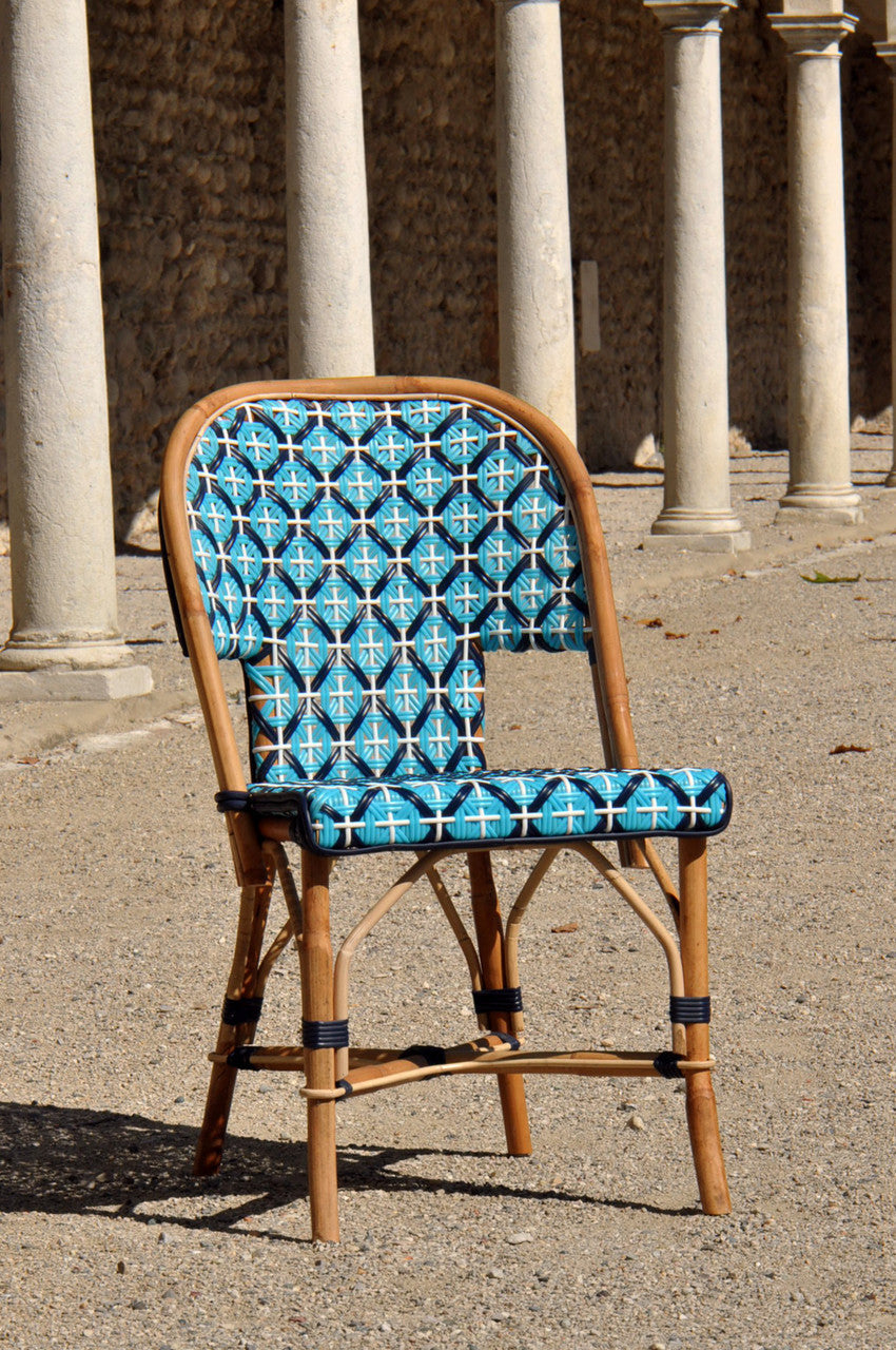 Chaise Bistro en Rotin Saint Tropez - Les Croix - Bleu Ciel/Bleu Marine/Blanc