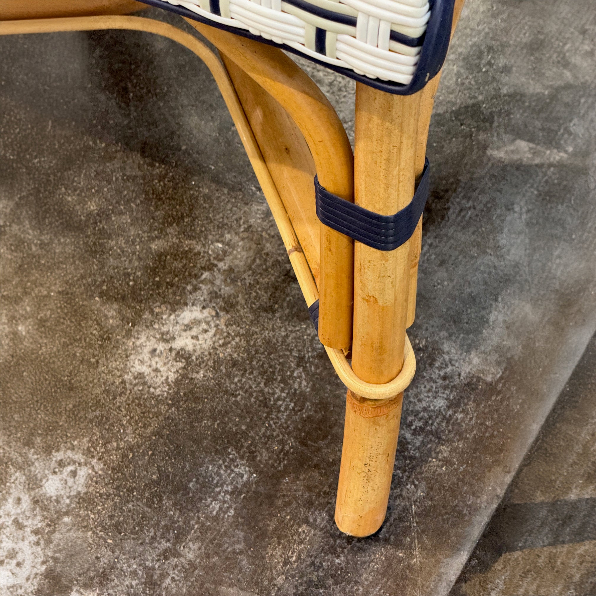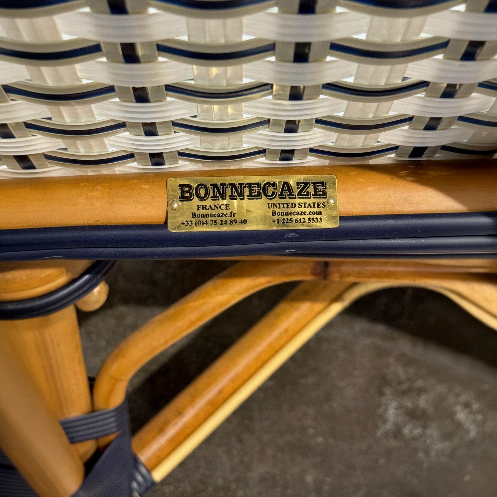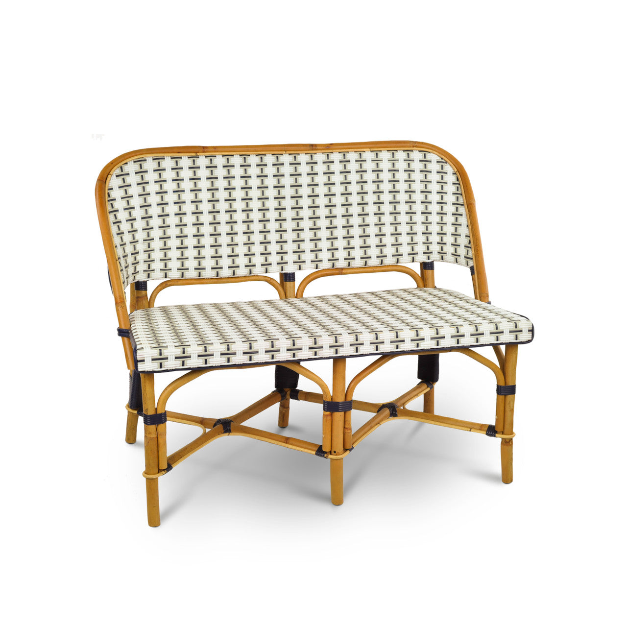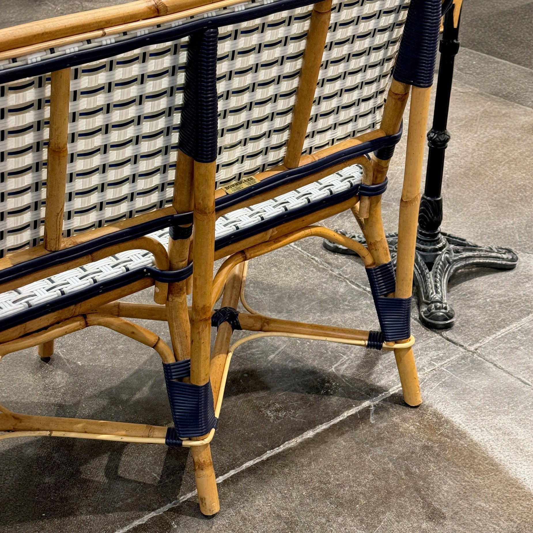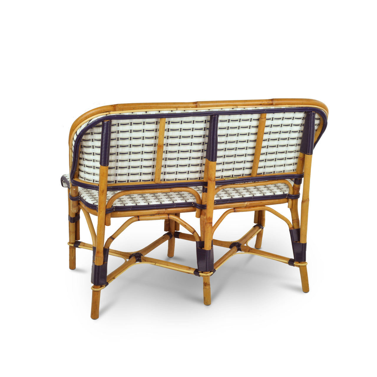 Banquette en Rotin Bistrot Français Valence (Sofa), 2 Places - Motif Vertical - Blanc/Argent/Bleu Marine