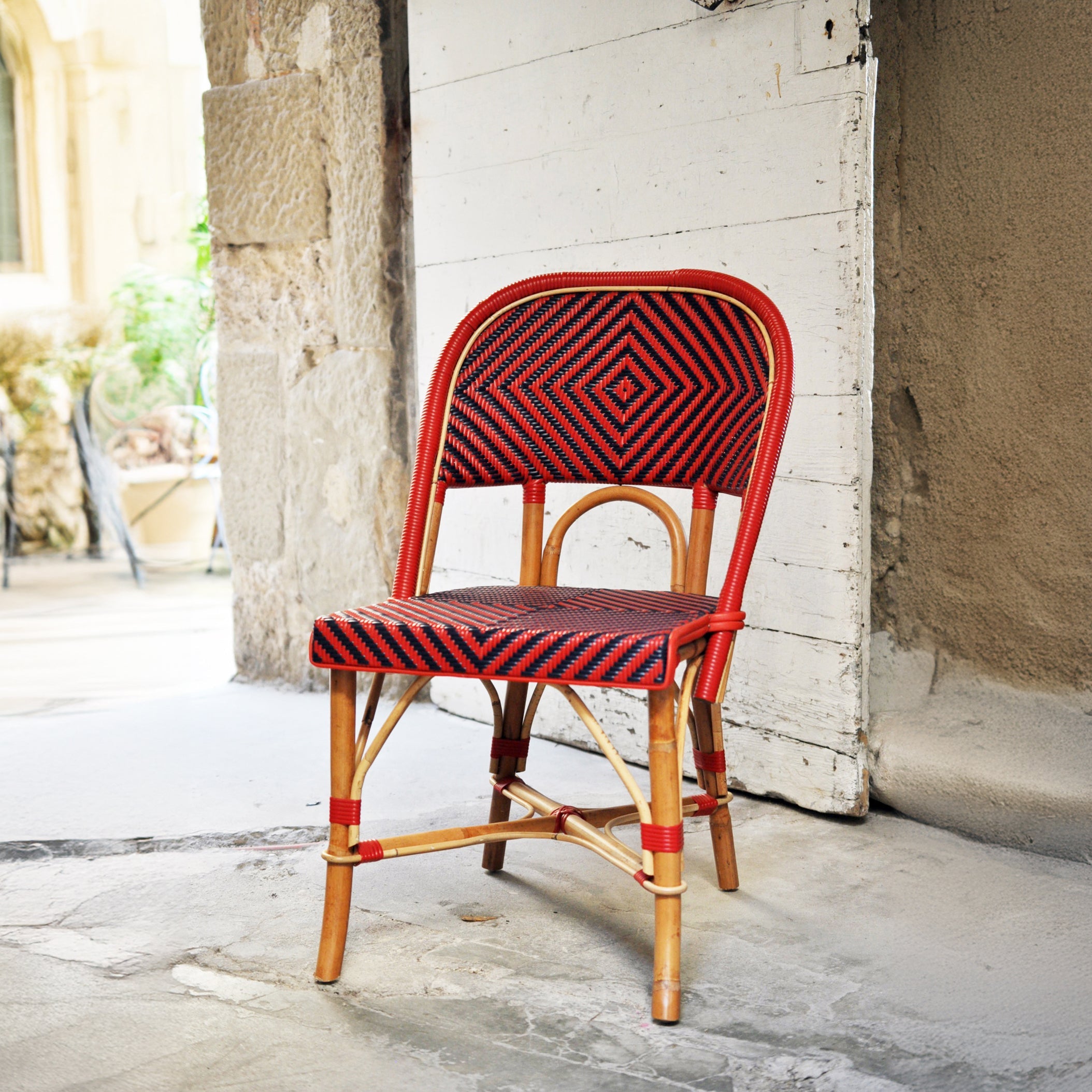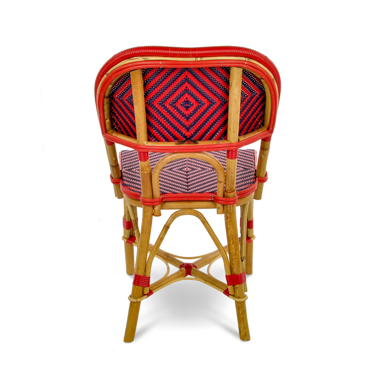 Chaise de Bistrot Française en Rotin Valence - Gros Diamants - Rouge/Bleu Marine