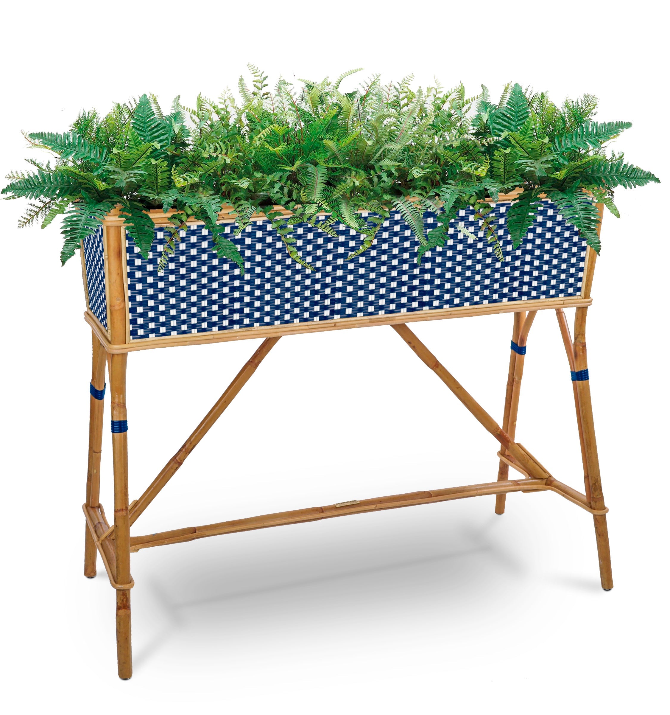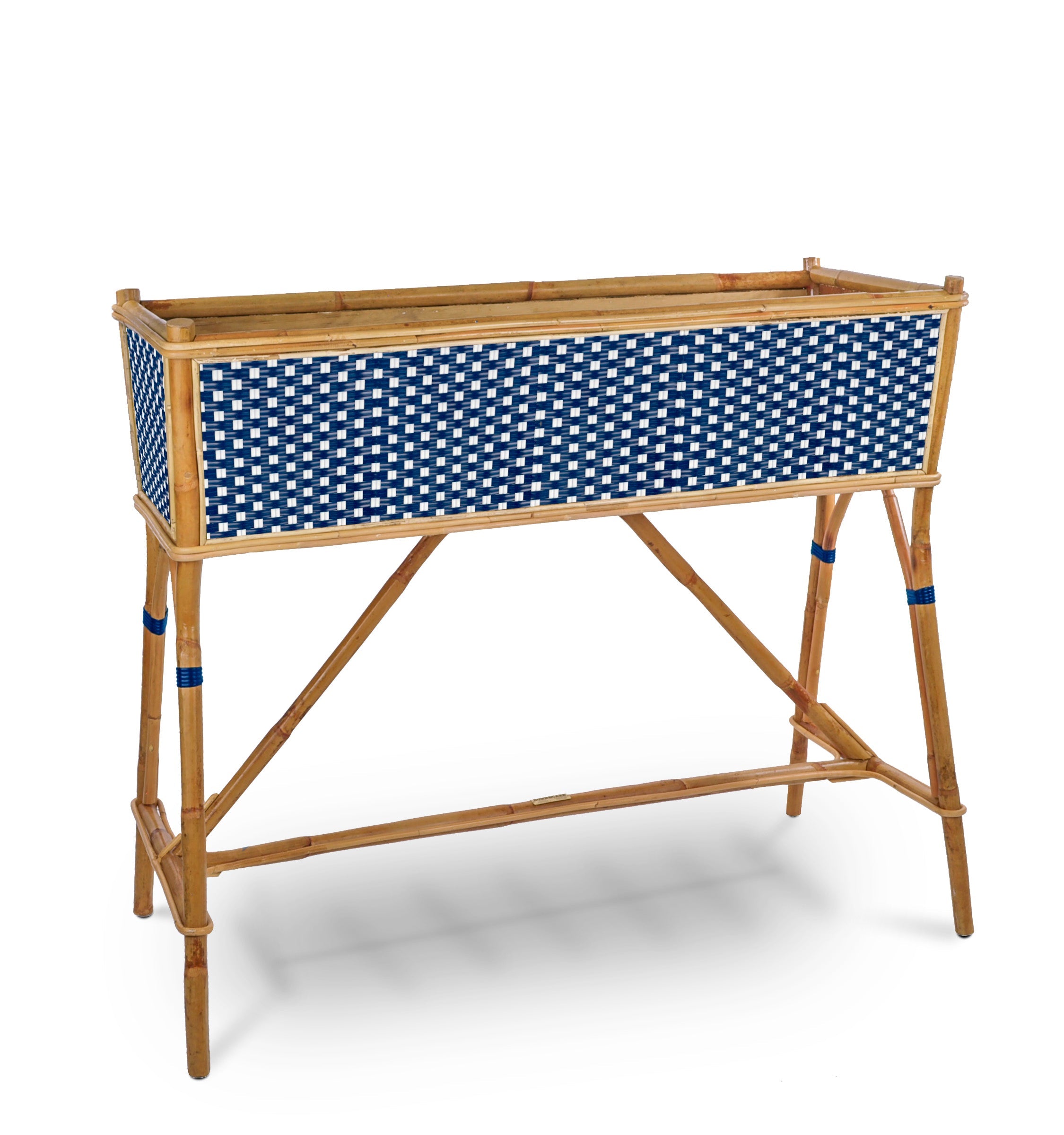 Jardinière en Rotin Bistrot Français Lyon - Petits Carrés - Bleu Marine/Blanc
