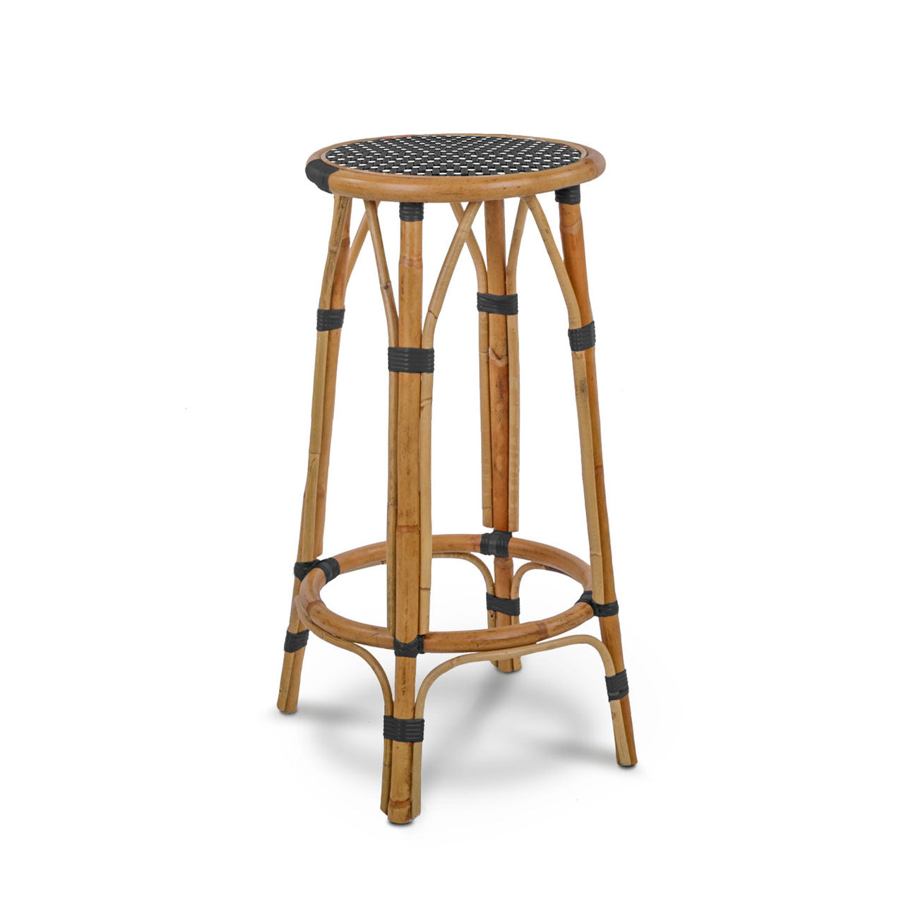 Tabouret de Bar en Rotin Valence French Bistro - Losanges Inversés - Noir/Blanc